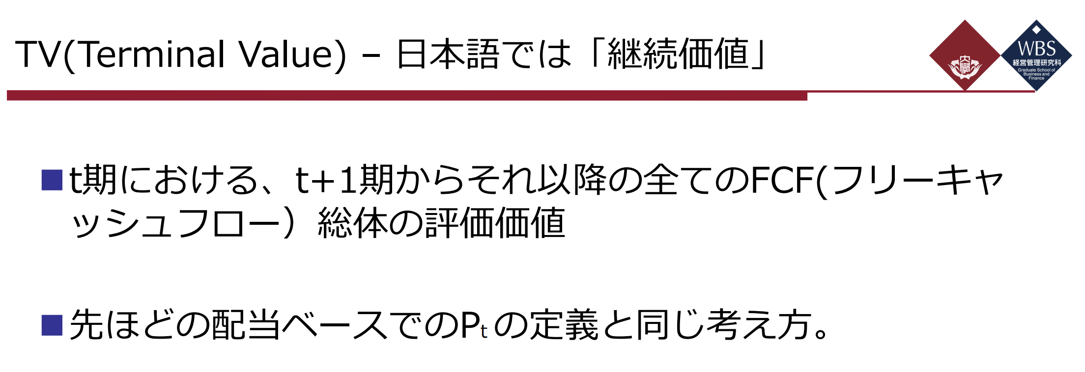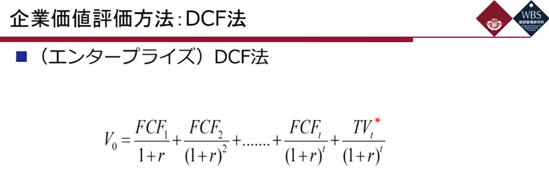 - t기에 있어서, t+1기부터 그 이후의 모든 FCF 총체의 평가가치