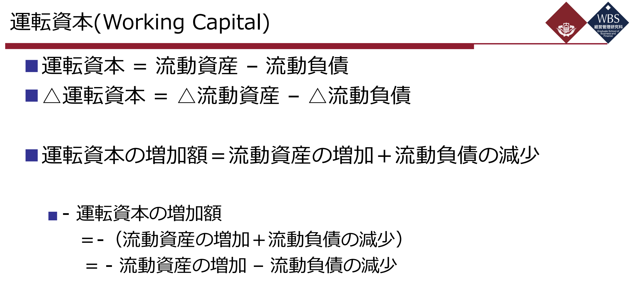 운전자본의 증가액 = 유동자산의 증가 + 유동부채의 감소