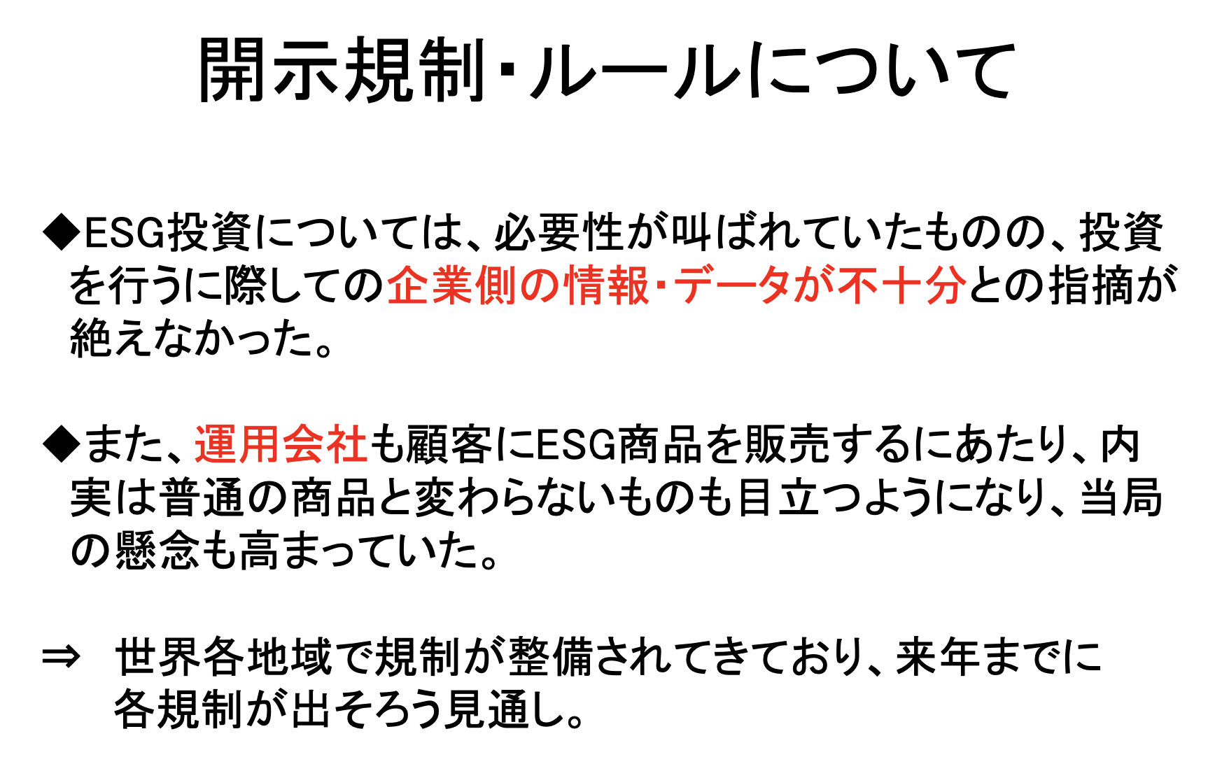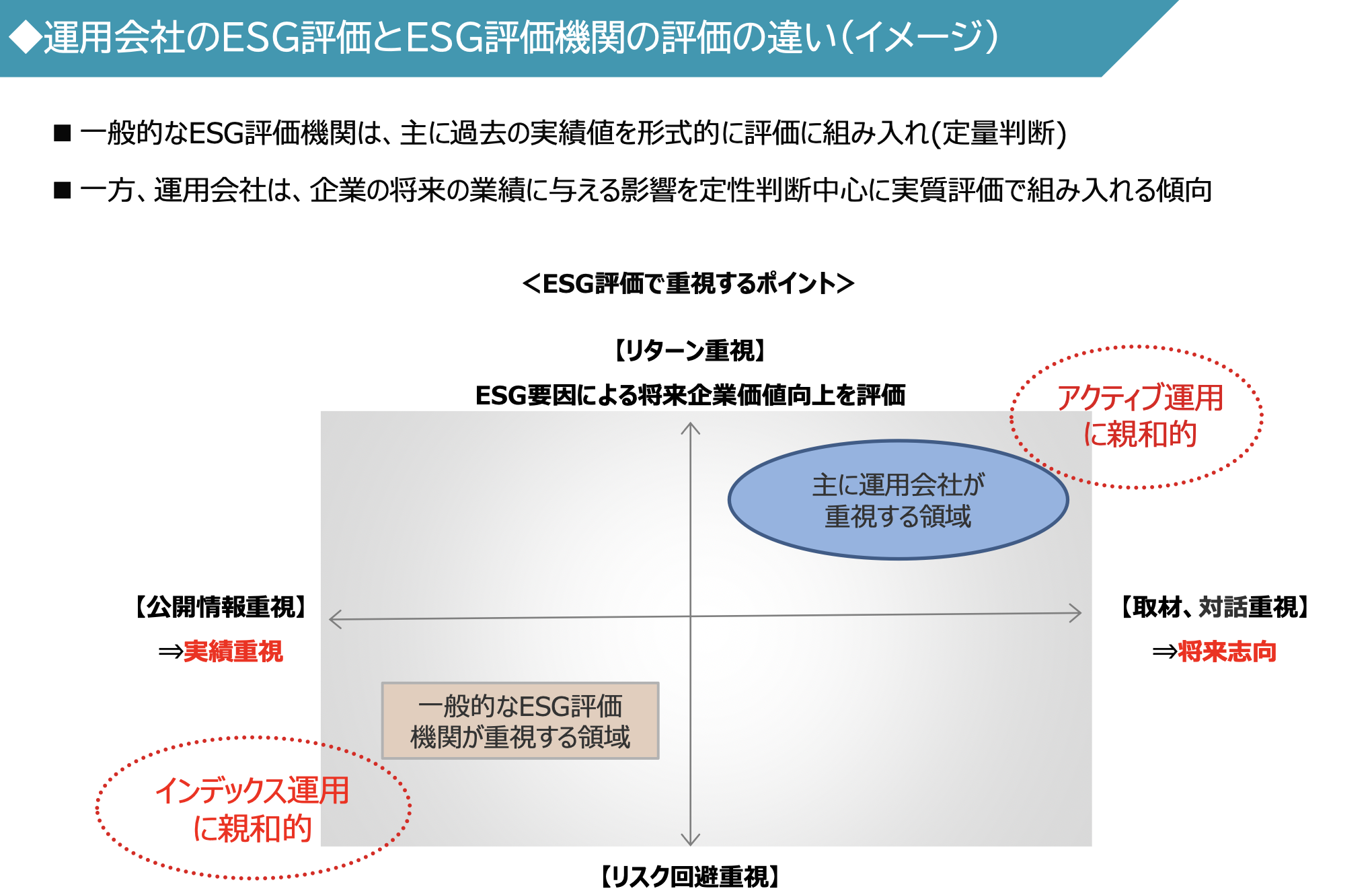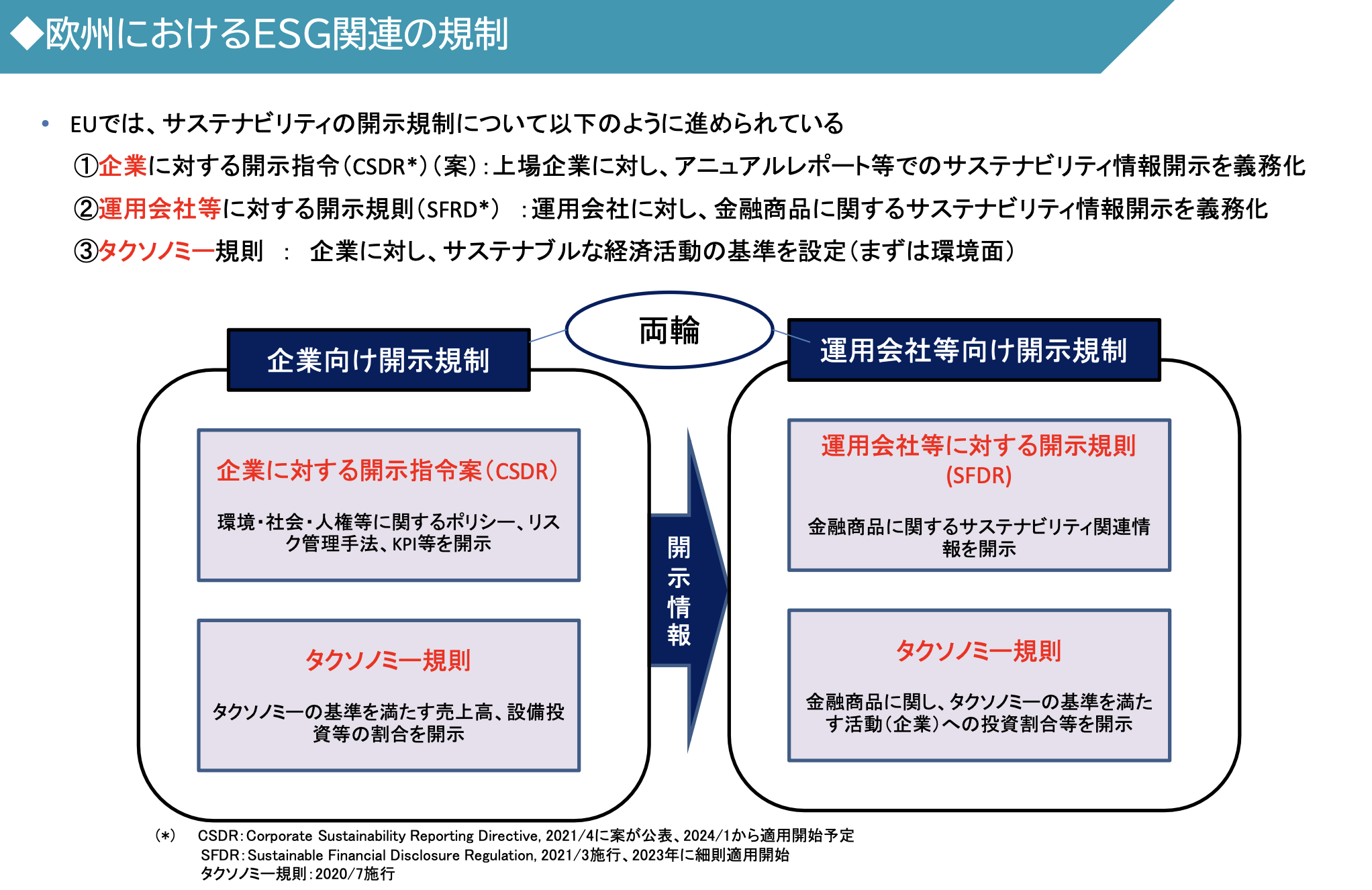 - 금융청이 정하는 2개의 Code도 기업경영에 있어서 ESG의 포함, 투자선별에 있어서의 ESG 분석을 밀고 있음