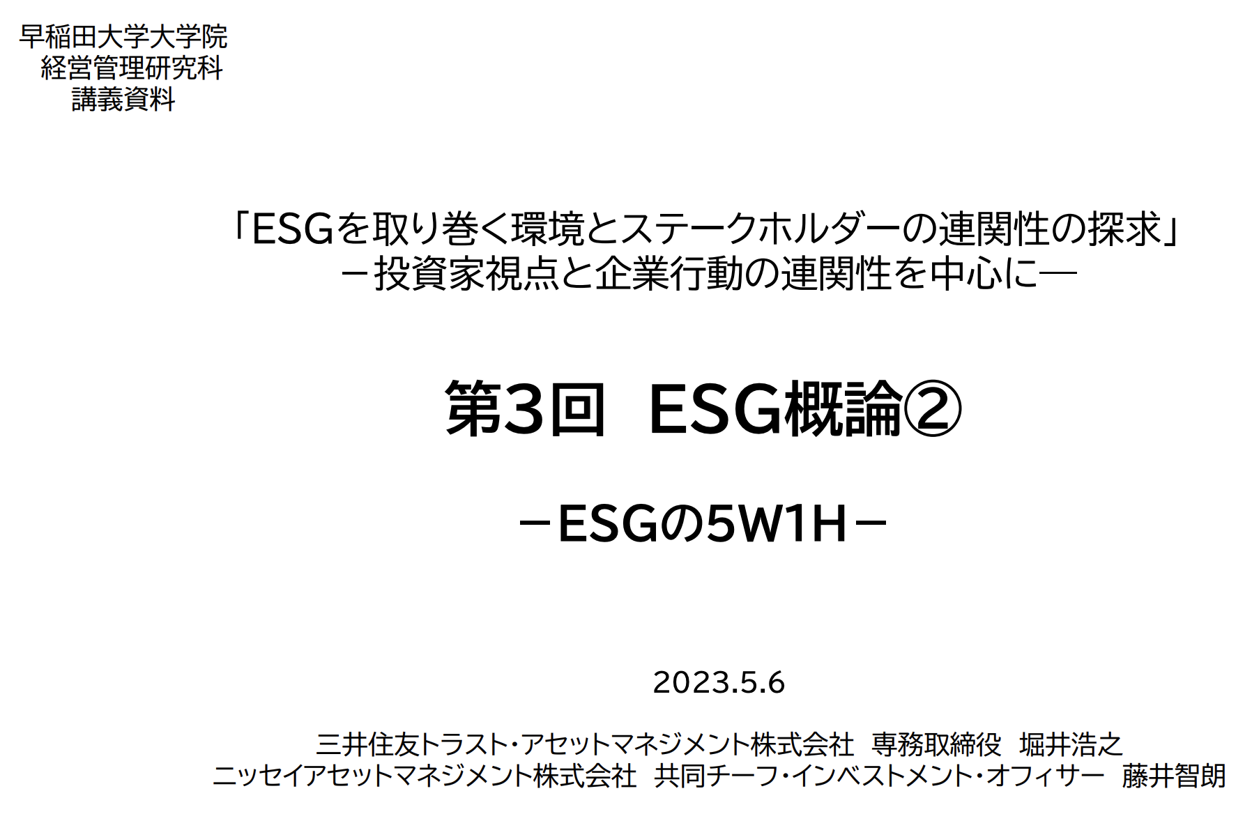 | (ESG #1) ESG 개론 | ESG를 둘러싼 환경과 스테이크 홀더의 연관성의 탐구 | ESGを取り巻く環境とステークホルダーの連関性の探求 | Waseda Business School | 와세다 MBA | FUJII Tomoaki 藤井智朗 HORII Hiroyuki .. (0) | 2023.04.16 |