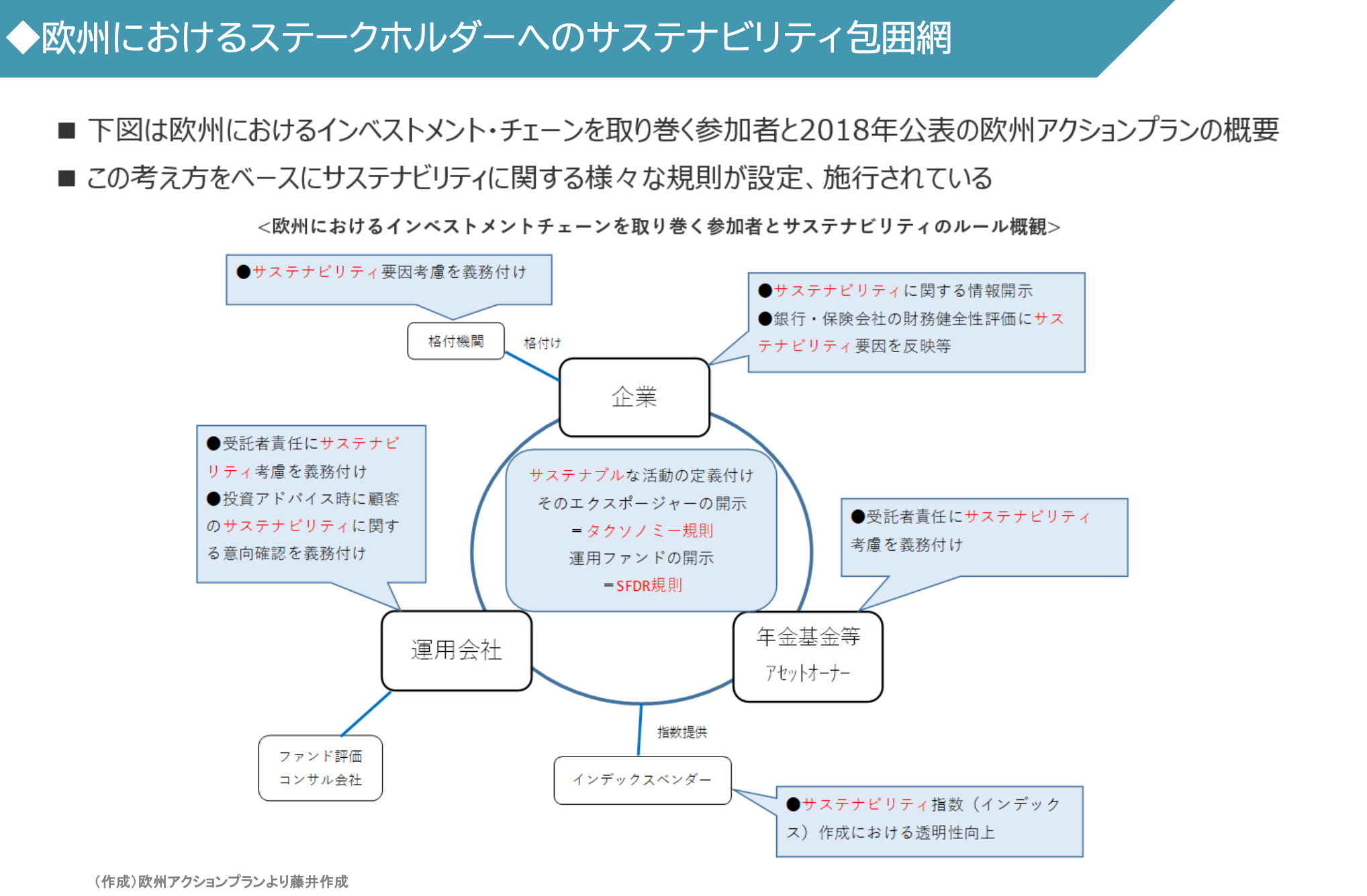 - 아래 그림은 EU에 있어서 Investment Chain을 둘러싼 참가자와 2018년 공표의 유럽 Action Plan의 개요