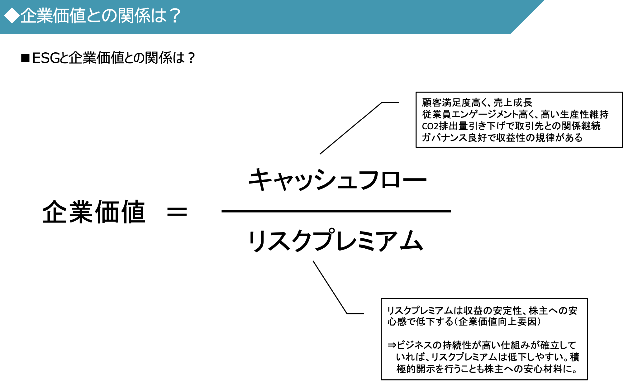 => 비지니스의 지속성이 높은 구조를 확립하고 있으면, Risk Premium은 낮춰지기 쉬움.