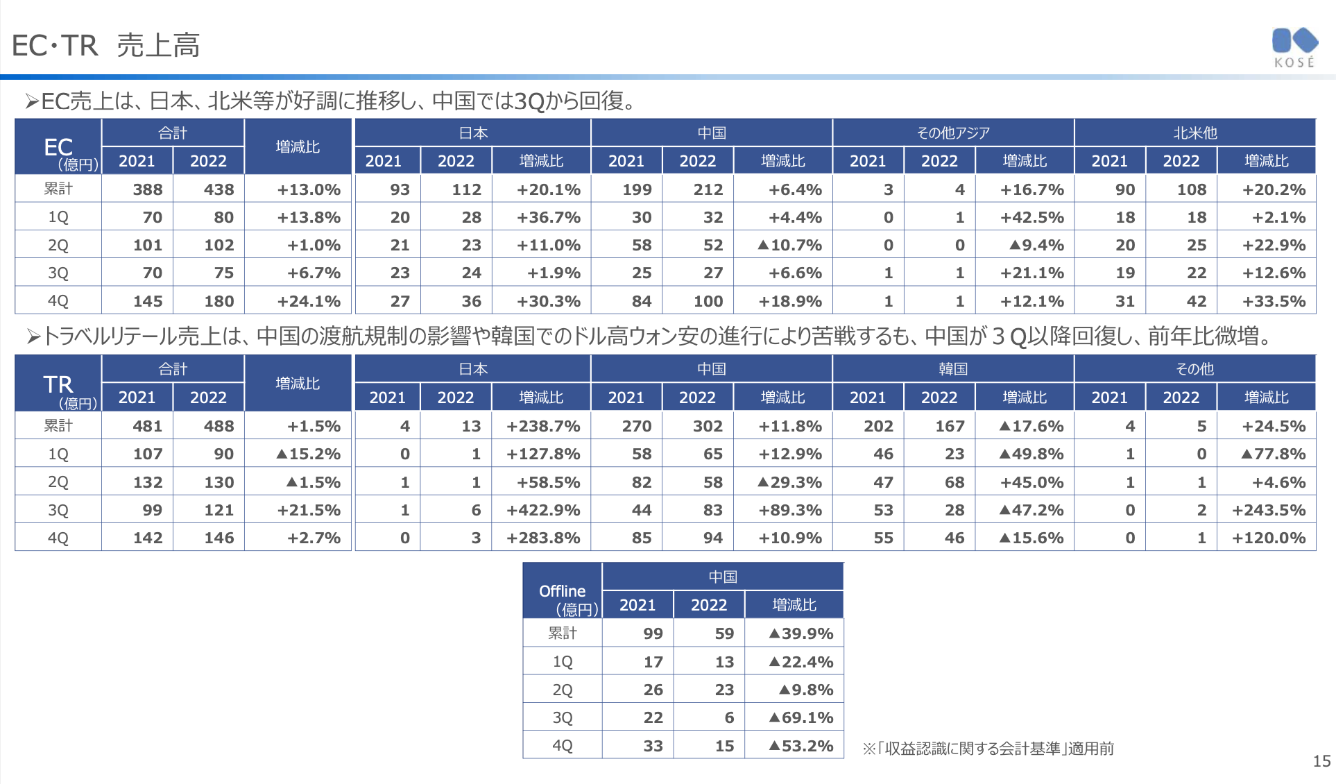 - SEKKISEI는 연간으로는 감수. 일본, 중국 Travel Retail에 있어서 회복 기조