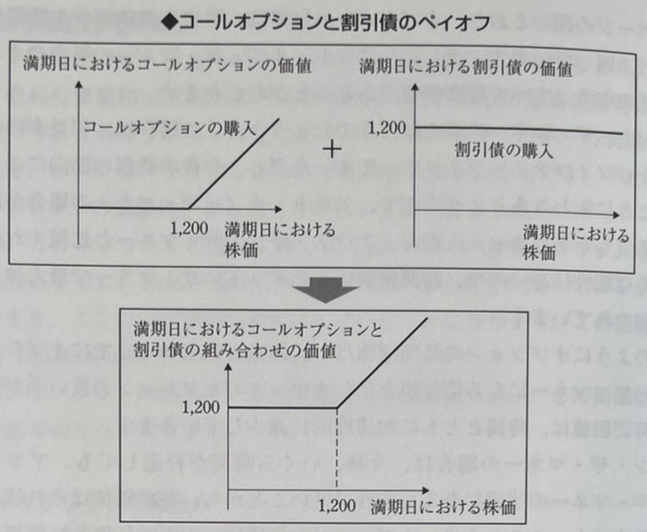 그 Call Option과 만기일이 동일한 액면 1,200엔의 할인채를 구입하는 것을 생각해본다.