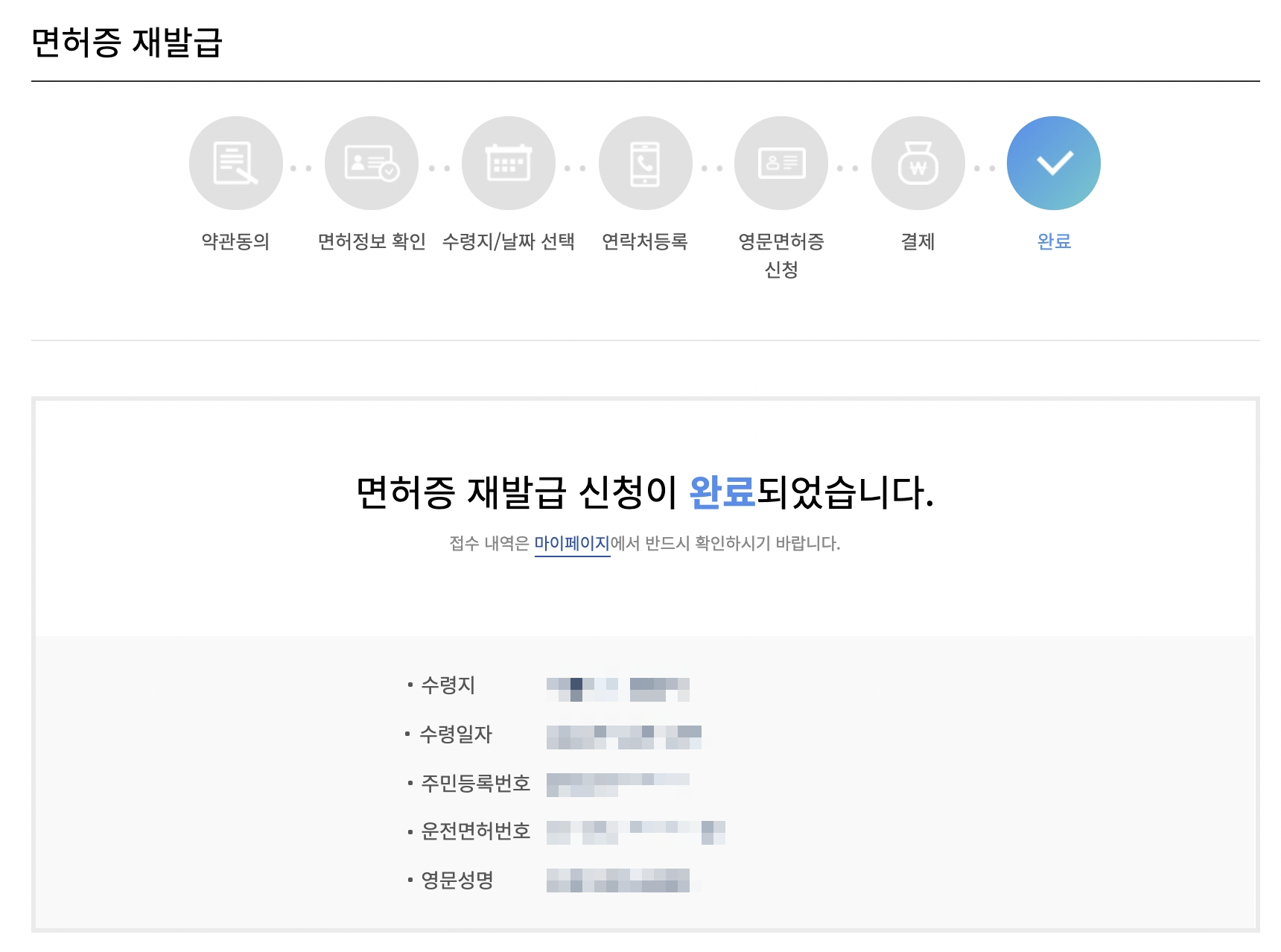 신청 완료와 동시에 새로운 면허번호가 부여된다고 하니..