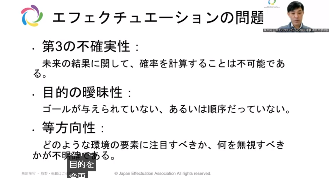 미래의 결과에 관해, 확률을 계산하는 것은 불가능함 - 목적의 애매함: