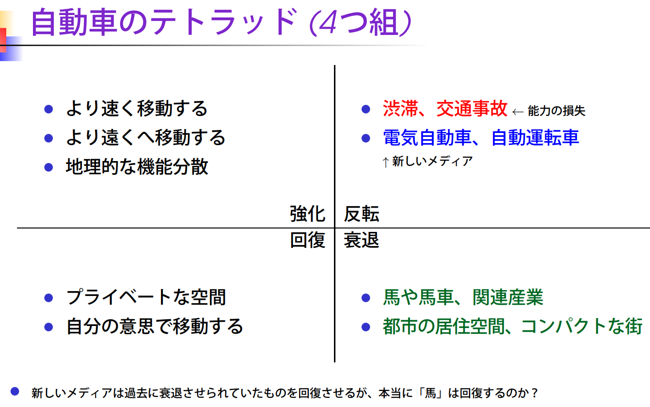 - 정체, 교통사고 ← 능력의 손실 - 전기자동차, 자동운전차 (새로운 Media) |