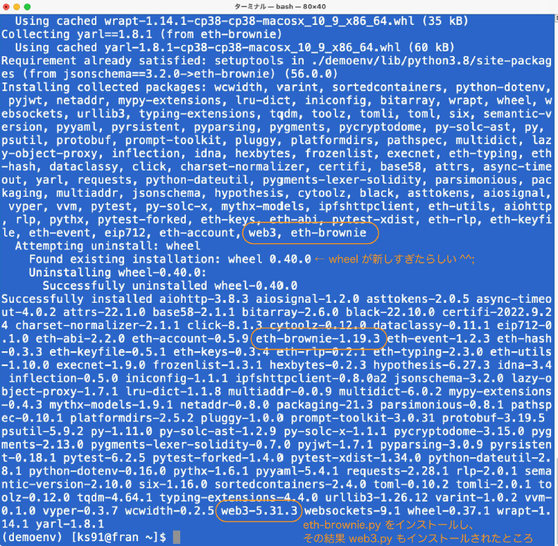 다음 pip install eth-brownie를 실행합니다.