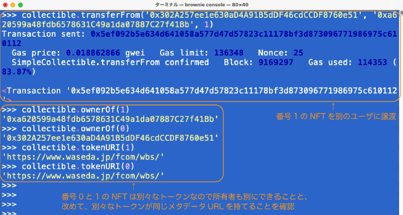 소유자를 바꿔볼까 해서 다음 Page에서는 1번 NFT를 다른 Account로 양도하고 있습니다.