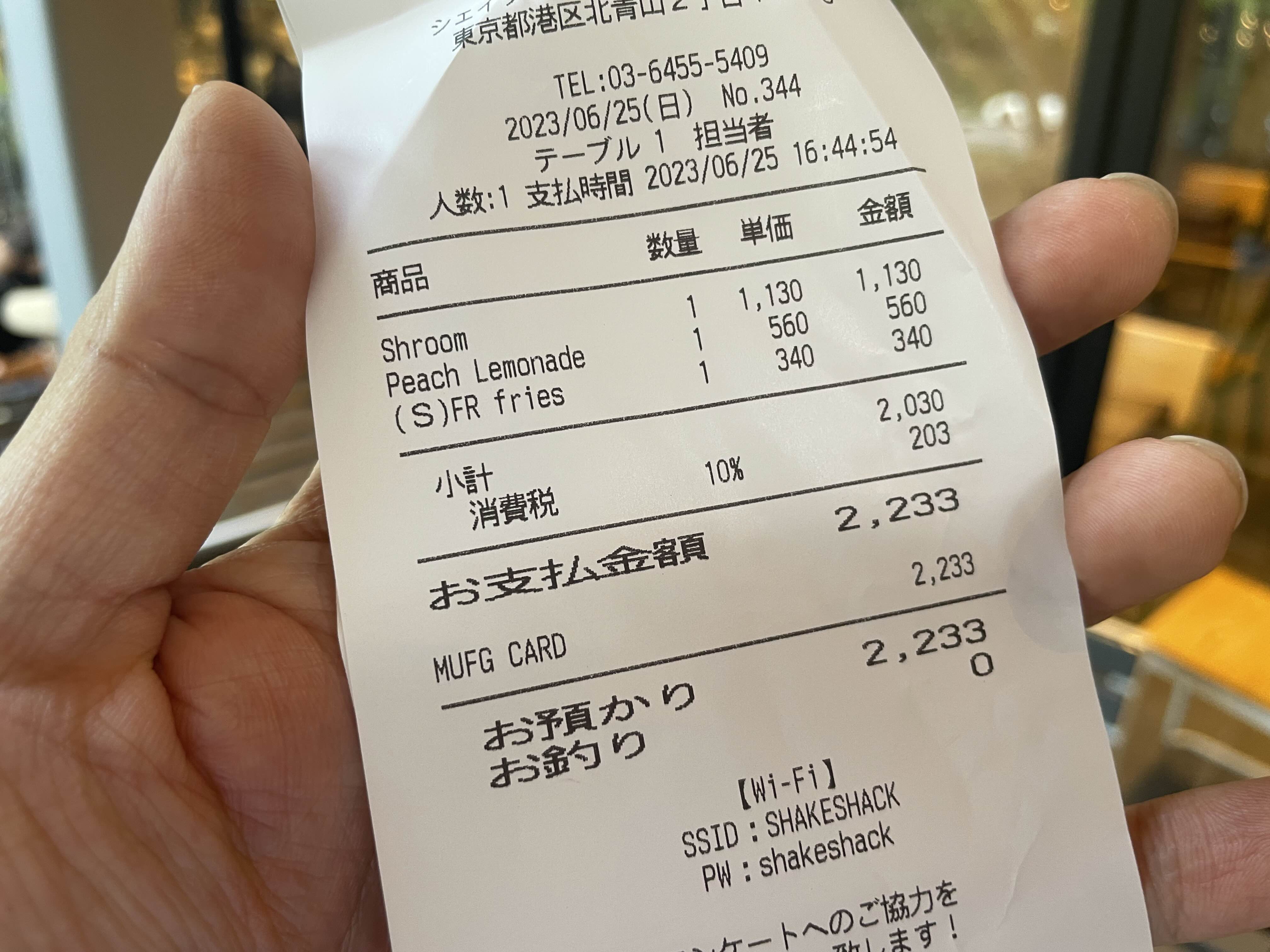 | Shack Double | 13,200원 | 1,364엔 | Fries | 4,800원 | 539엔 |