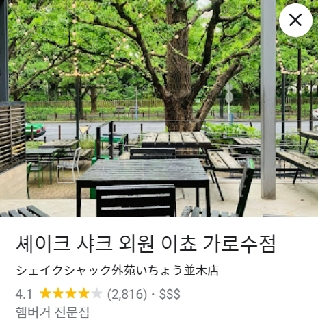 셰이크 샤크 외원 이쵸 가로수점 · 2 Chome-1-15 Kita-Aoyama, Minato City, Tokyo 107-0061 일본