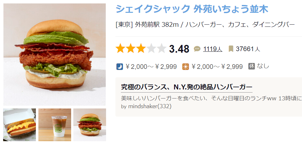 シェイクシャック 外苑いちょう並木 (外苑前/ハンバーガー)
