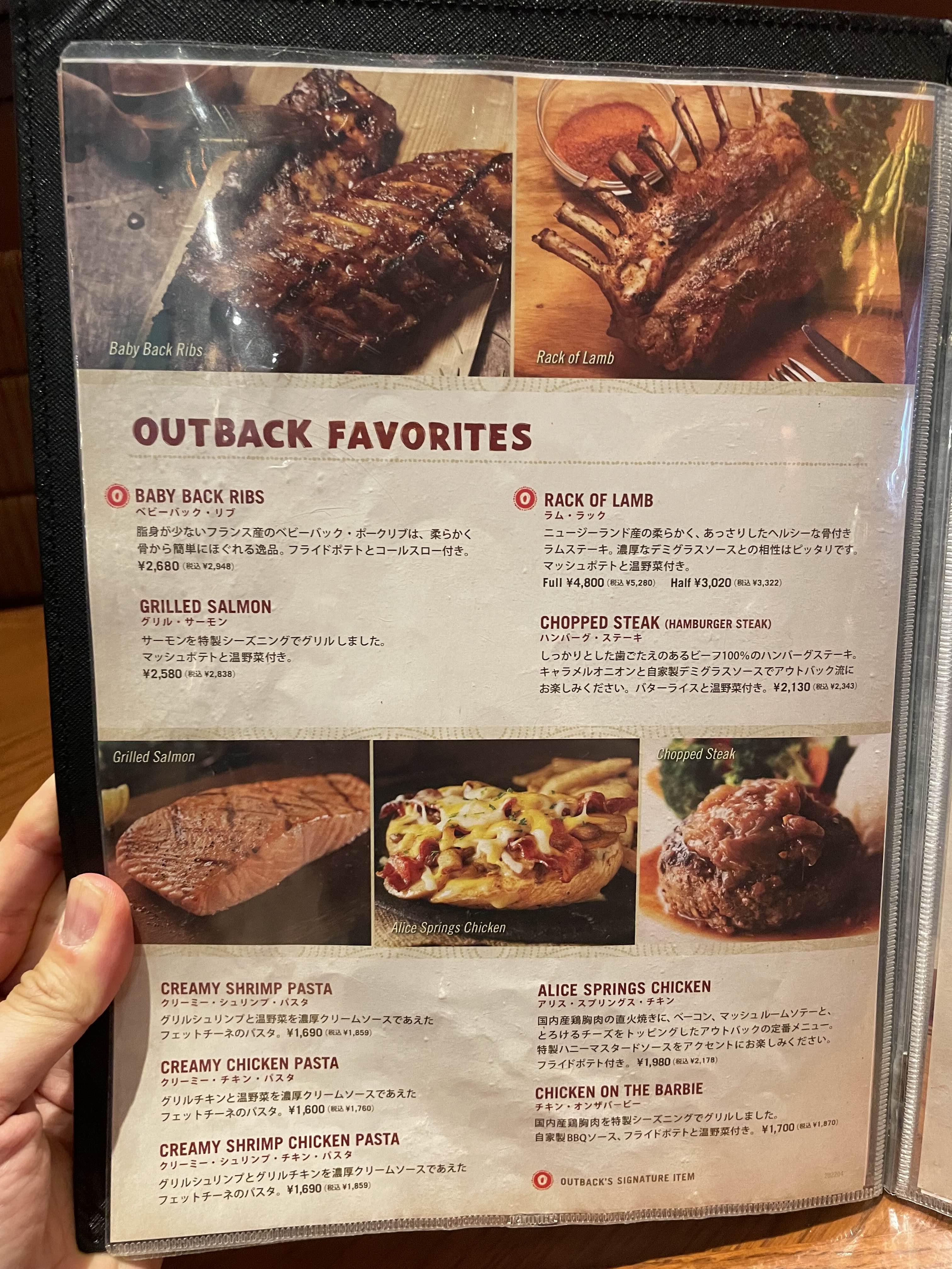 Outback Special 150g 2,970엔, 300g 4,059엔