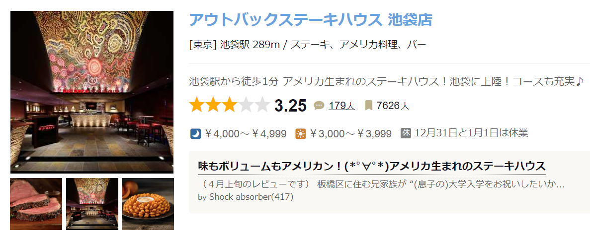 アウトバックステーキハウス 池袋店 (池袋/ステーキ)