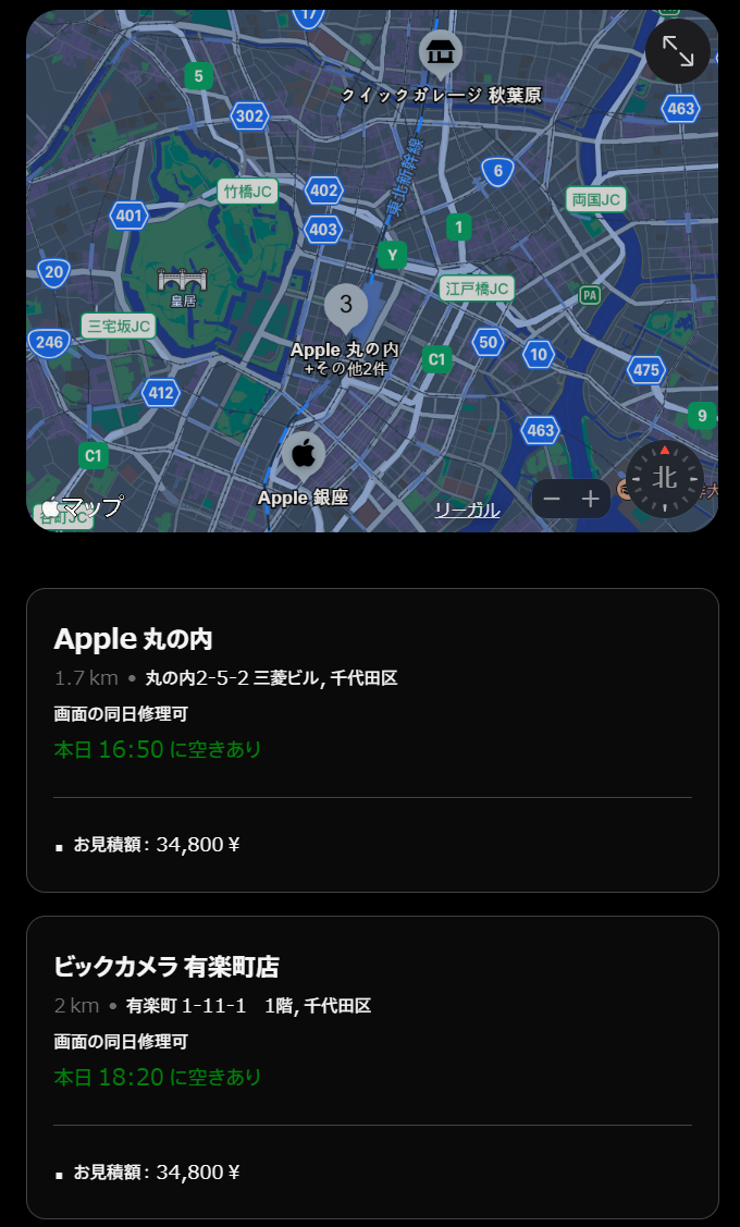 아래 나와있는 식으로 애플스토어도 있고 제휴된 곳들도 나온다. 빅꾸카메라처럼