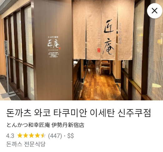 돈까츠 와코 타쿠미안 이세탄 신주쿠점 · 일본 〒160-0022 Tokyo, Shinjuku City, Shinjuku, 3 Chome−14−1 伊