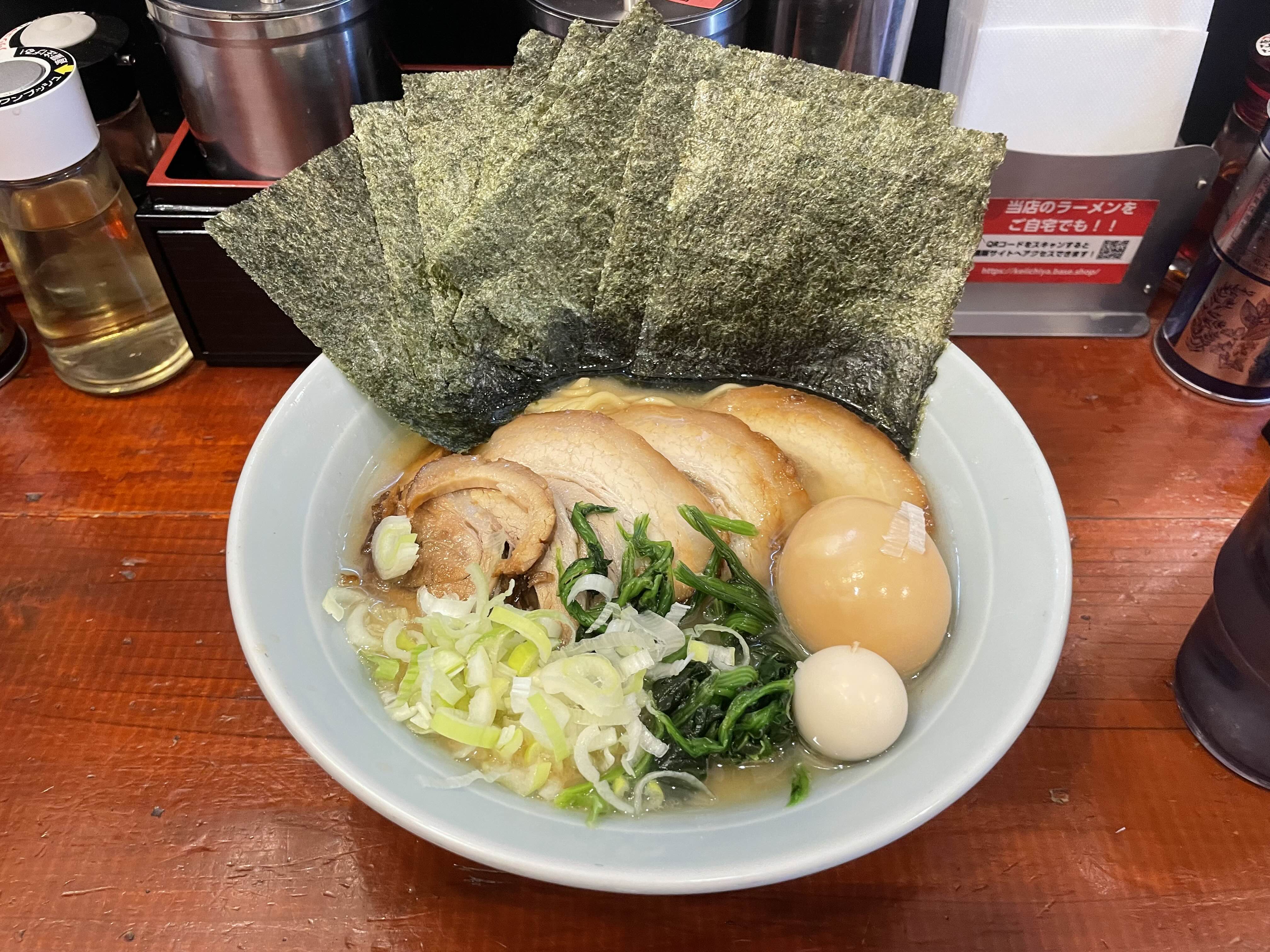 요츠야역에서 바라보면 대로변에 있는 큰 라멘집 료마 용마 그냥 그 가게가 주는 압도적인 포스에 호기심이 자극되어 가보고 싶었다. 구글평점 3.9 낫배드 横浜らーめん 龍馬 · 1 Chome-4 Yotsuya, Shi