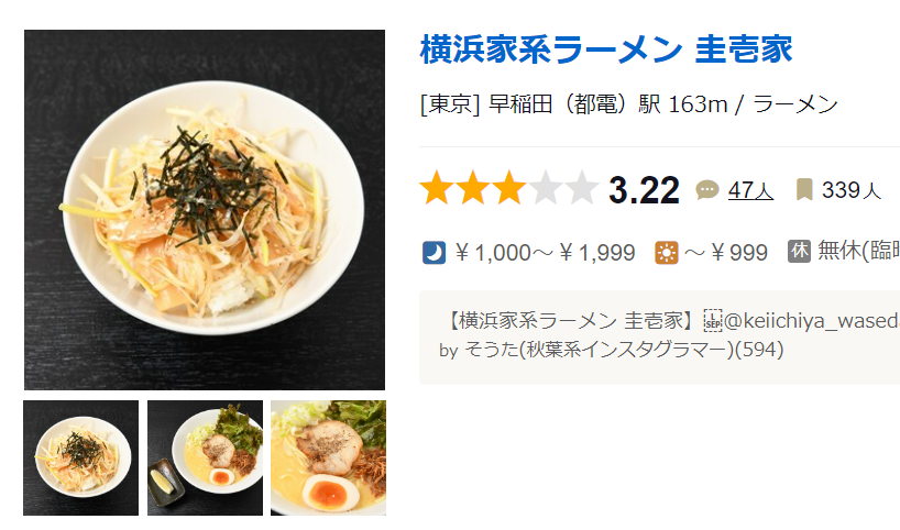 타베로그 평점 3.22점