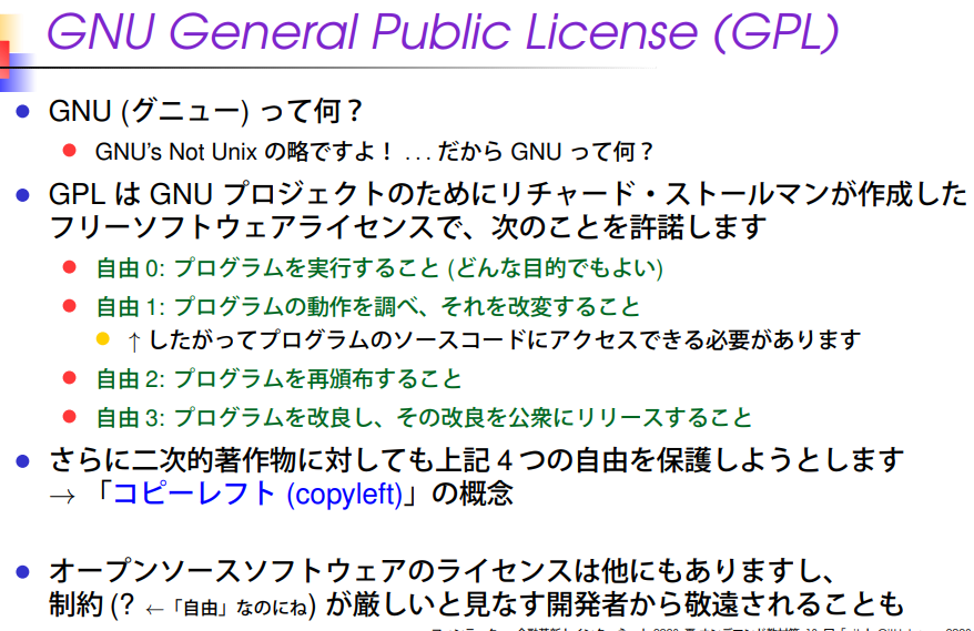 - GPL은 리처드 스톨만이 GNU 프로젝트를 위해 만든 Free Software License이며, 다음과 같은 내용을 허용합니다.