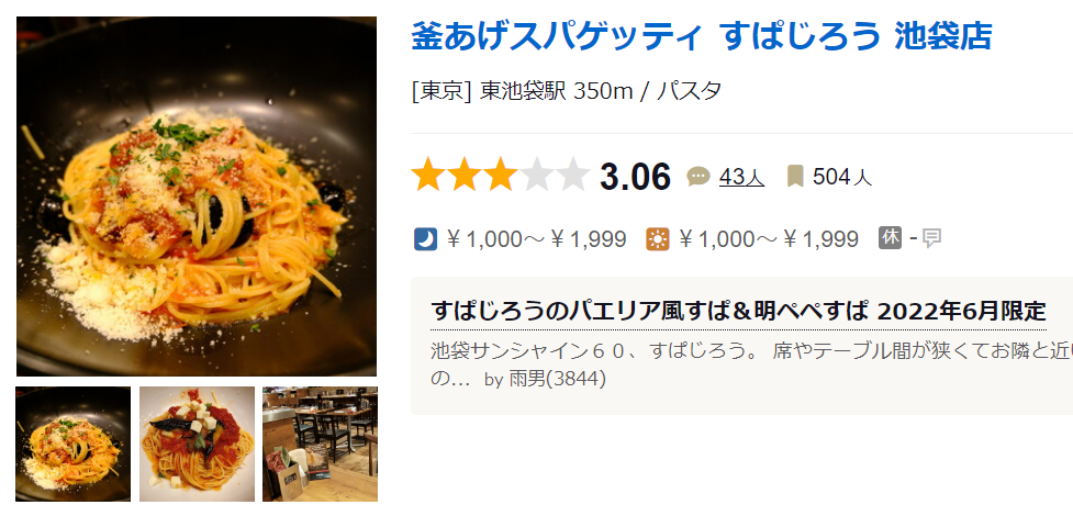 구글 평점 3.2점.. ㅋㅋ 釜あげスパゲッティ すぱじろう 四谷 · 일본 〒160-0004 Tokyo, Shinjuku City, Yotsuya, 1 Chome−6−1 コモ ★★★☆☆ · 국수 전문점 www.google.com 타베로그 평점 3.06점 釜あげスパゲ