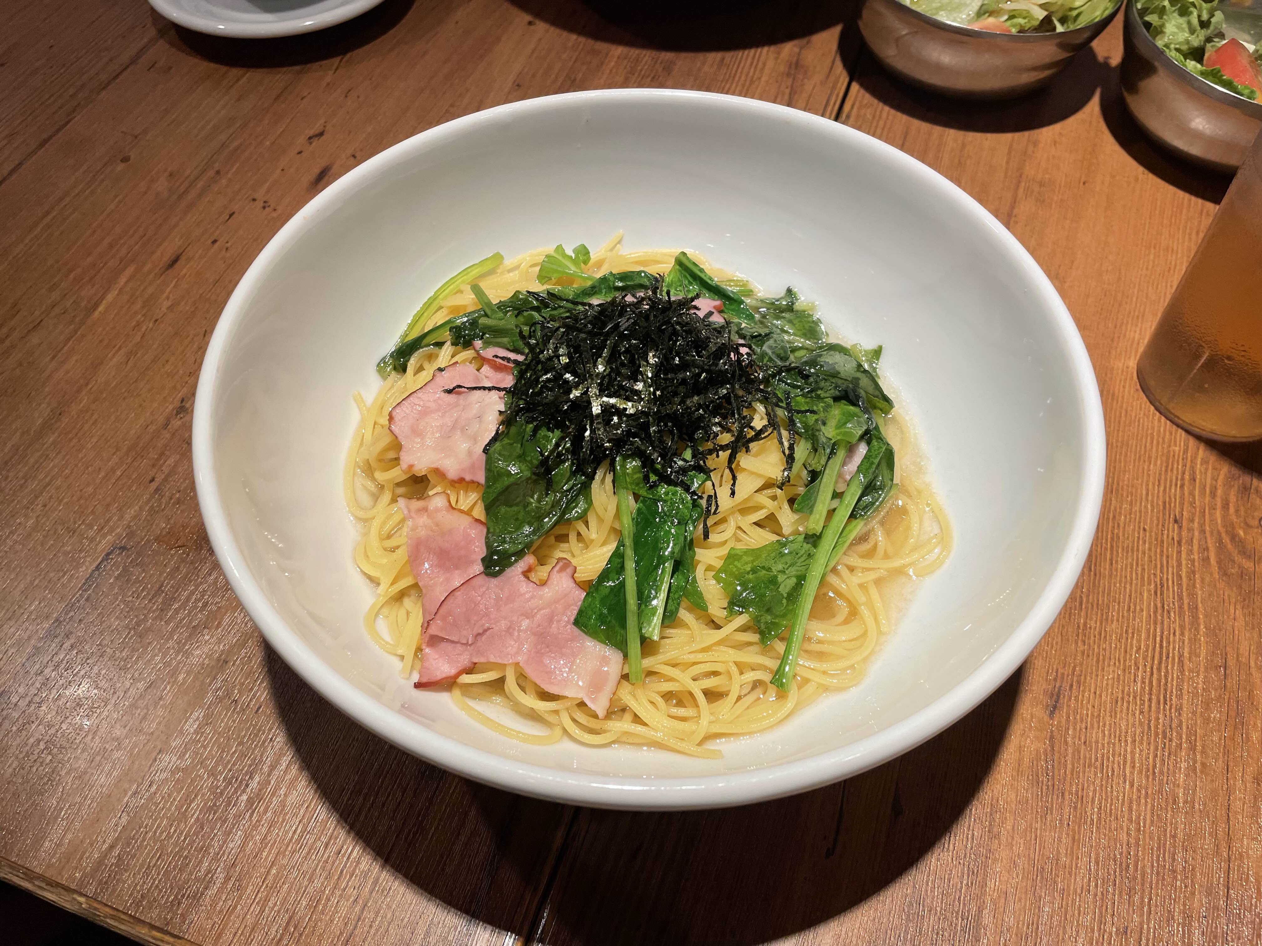 4번 시금치와 베이컨 일식 스파게티 1,045엔