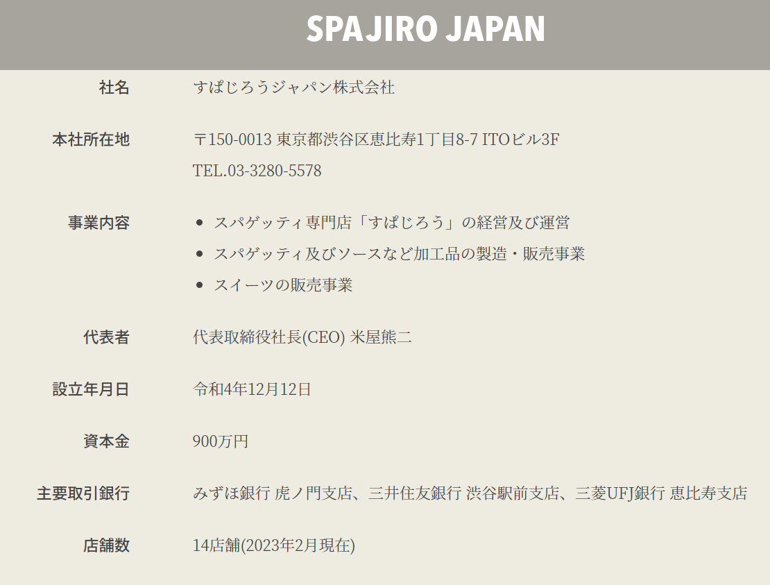 会社概要 - すぱじろうジャパン株式会社