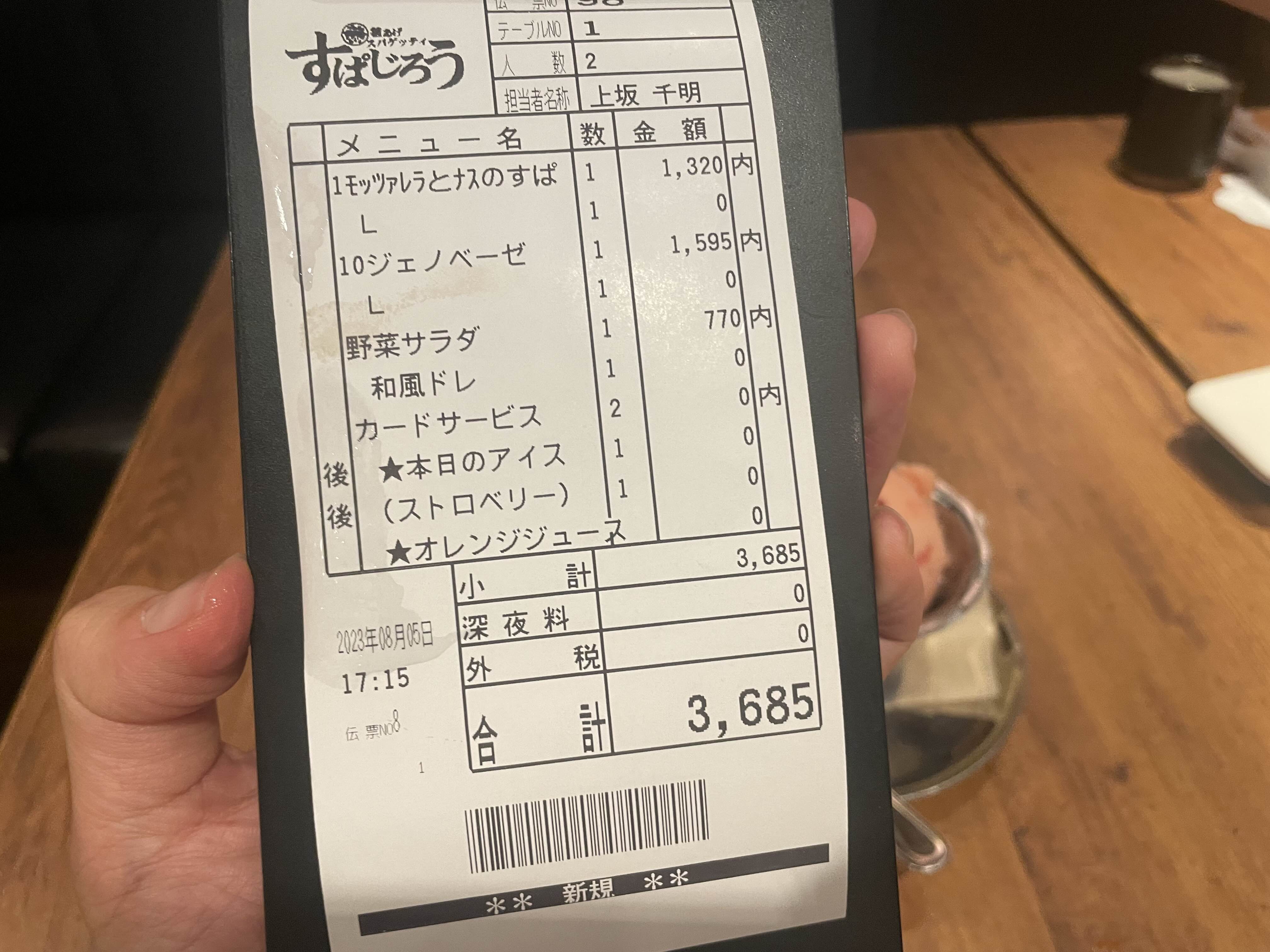 이렇게 먹고 3,685엔...