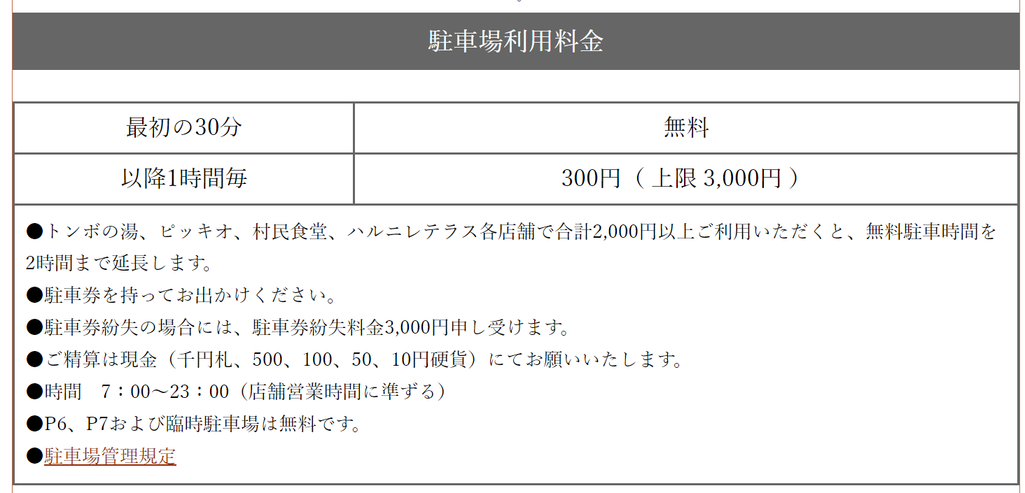 주차장은 1시간마다 300엔인데 각 점포에서 2,000엔 이상 결제하면 2시간 연장해준다고 한다.