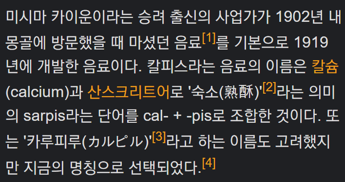 나무위키에 따르면 칼피스도 종류가 꽤나 다양하게 있다고 한다.