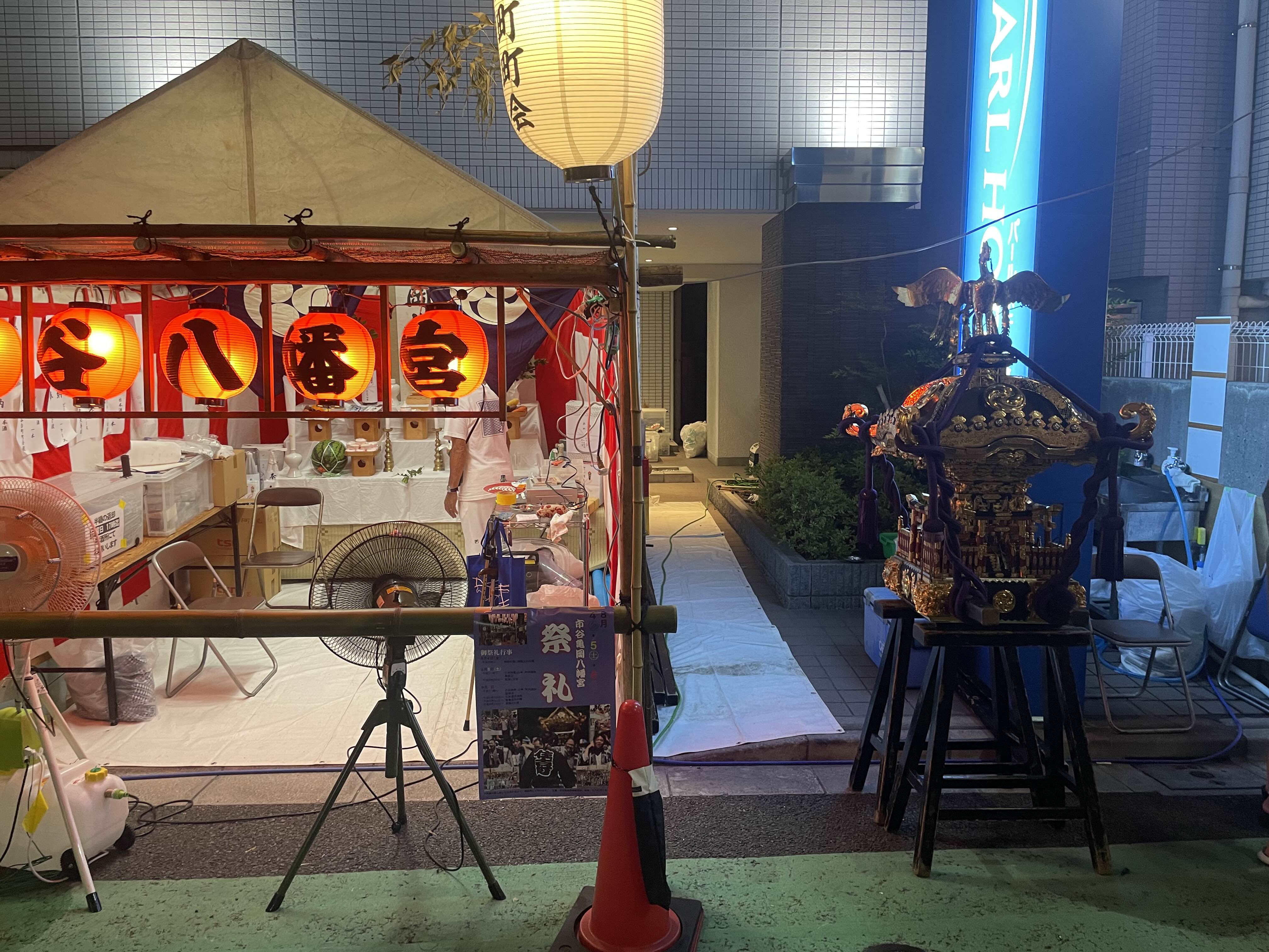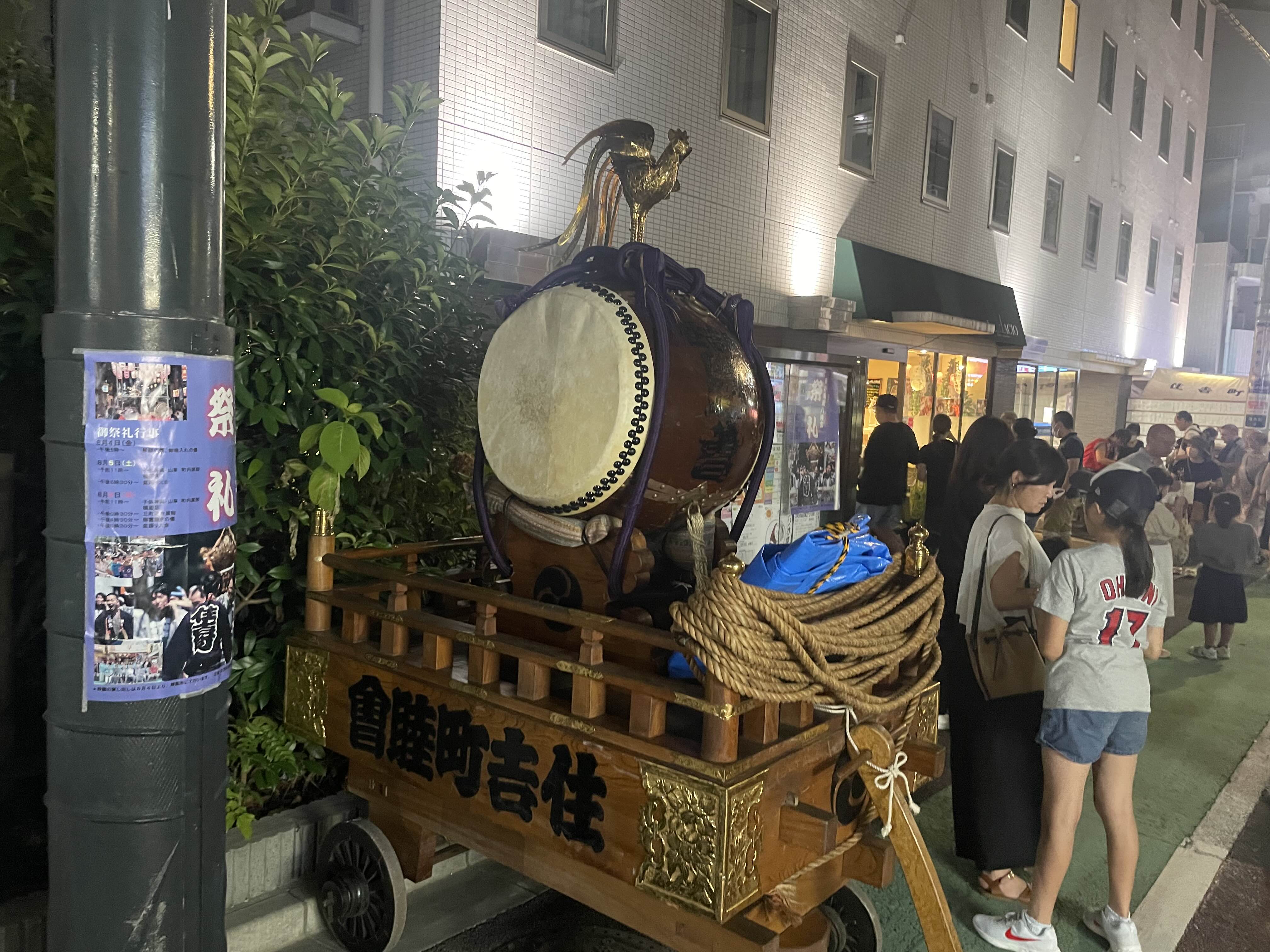 어린이 가마 마을 내 행차 | 子供神輿・山車 町内御御 模擬店 세 마을 연합 행차 | 三町連合渡御 영혼 빼는 의식 | 御霊抜きの儀 봉오도리 대회 | 盆踊り大会 |