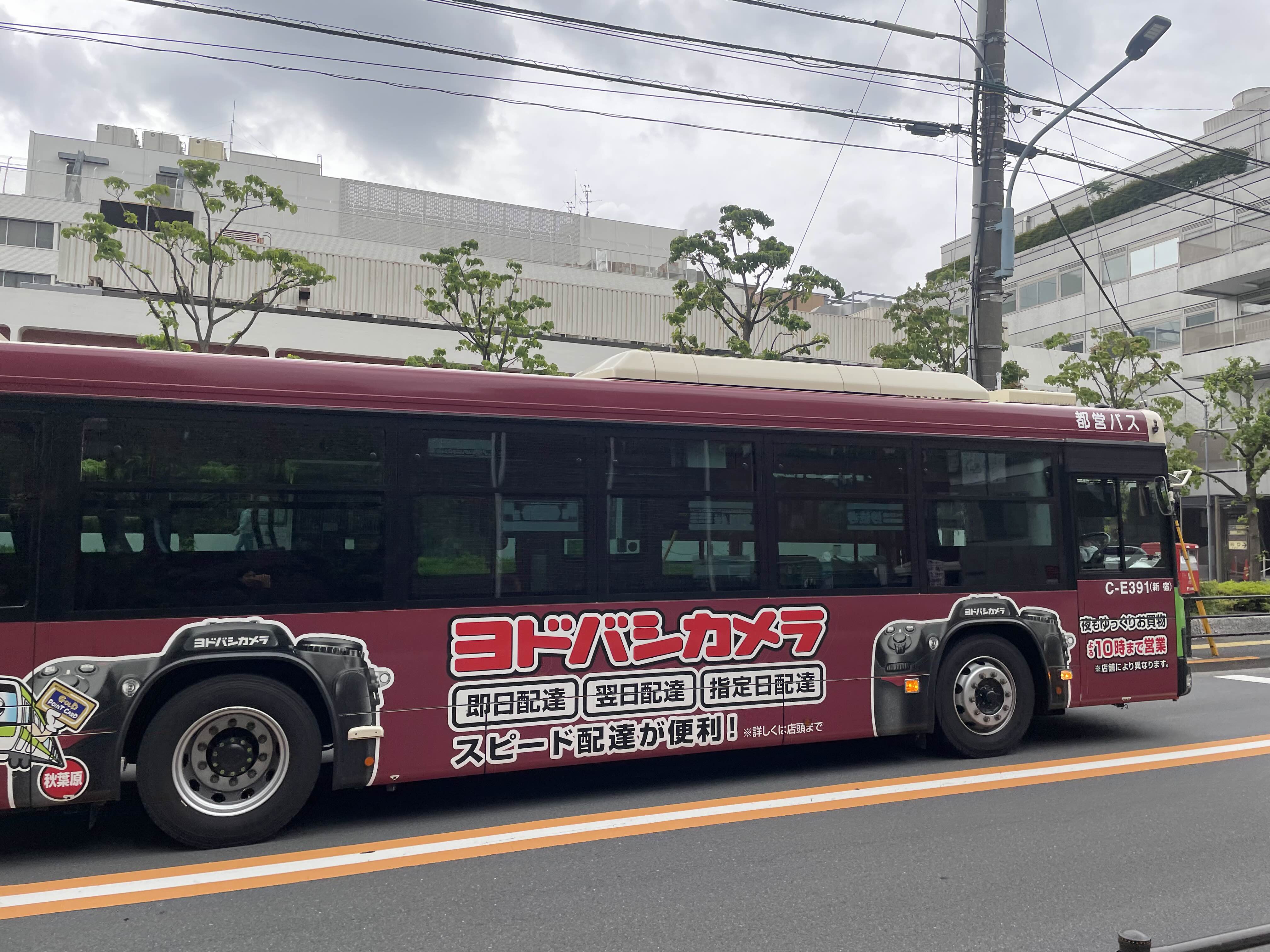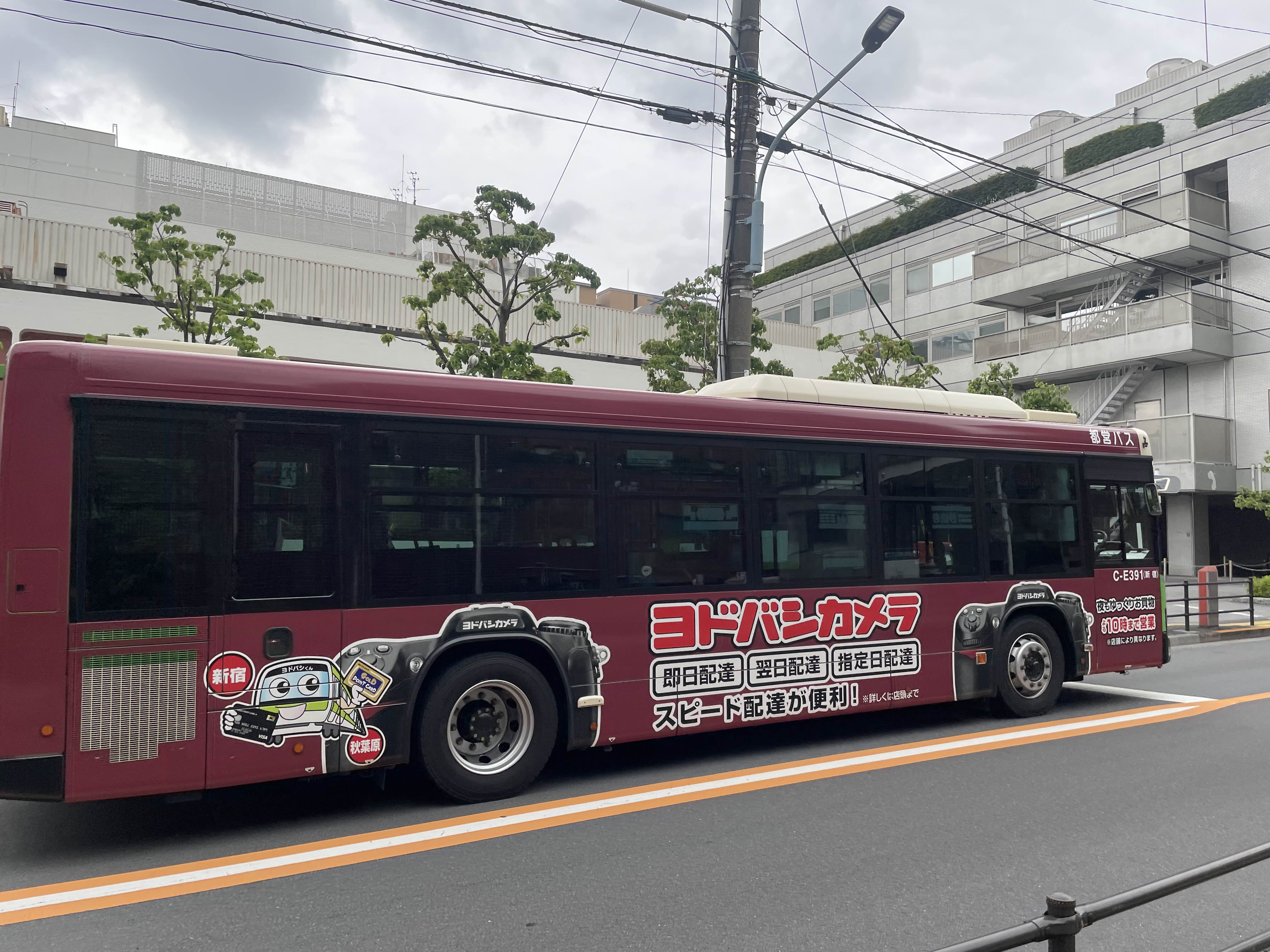 요는 이렇게 버스 전면에 요도바시 카메라 광고가 있다..