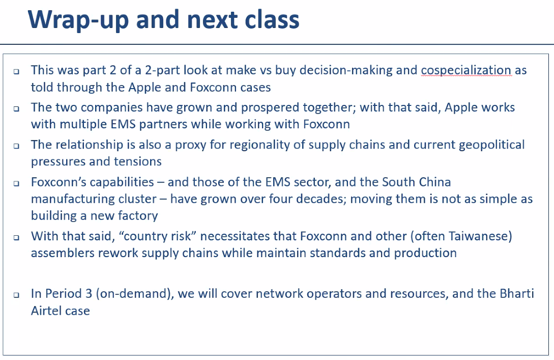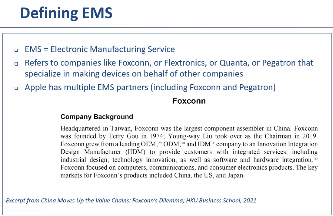 - Apple has multiple EMS partners (including Foxconn and Pegatron)