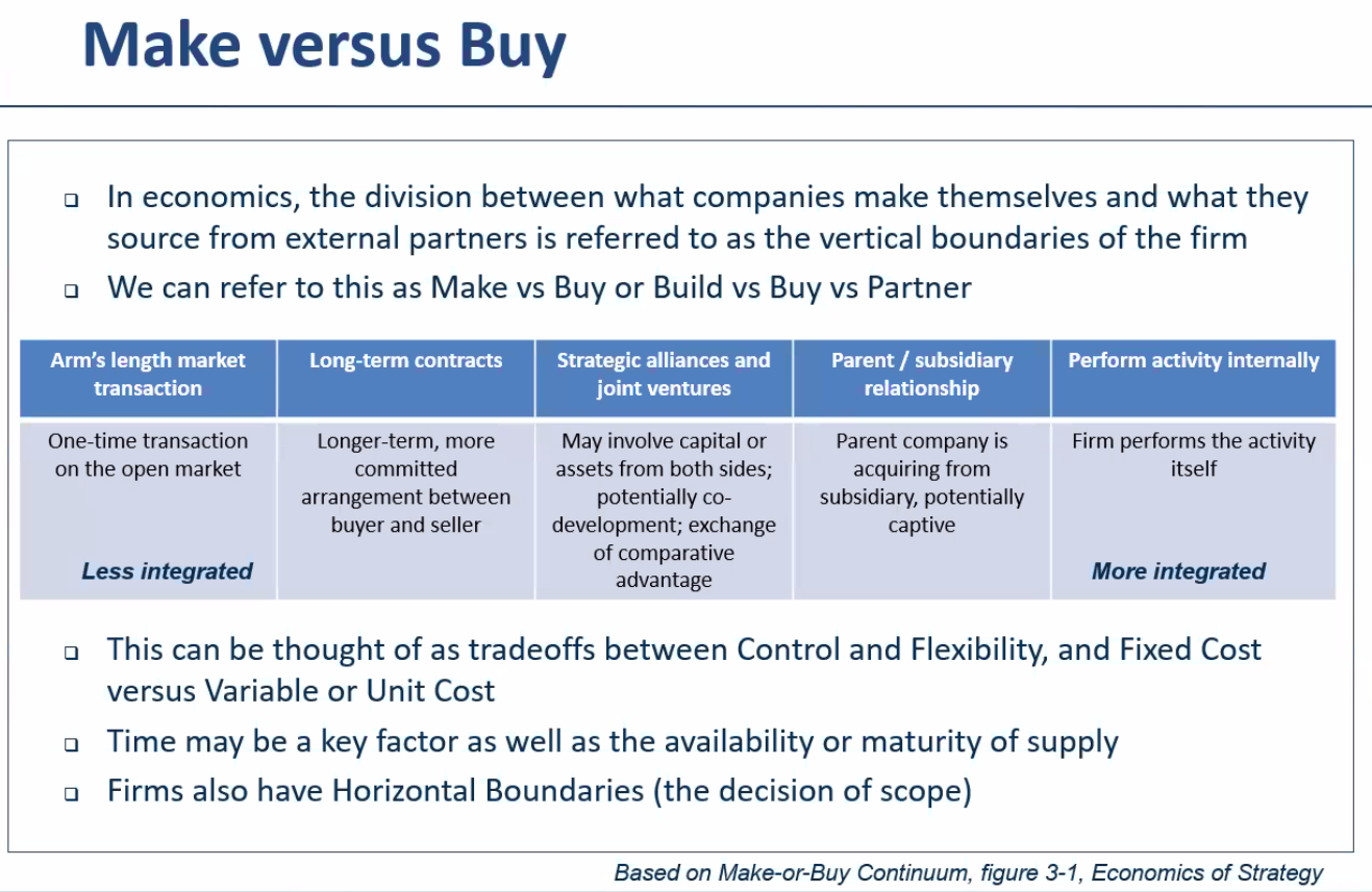 - We can refer to this as Make vs Buy or Build vs Buy vs Partner