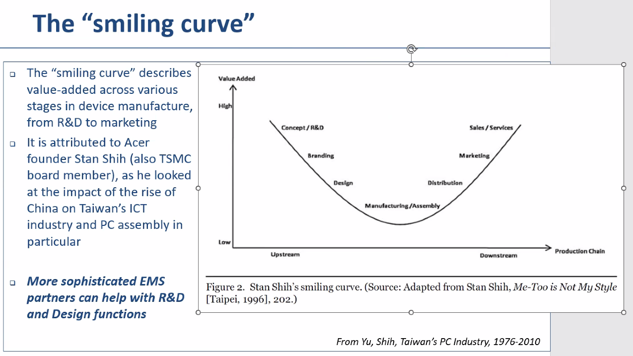 - It is attributed to Acer founder Stan Shih (also TSMC board member), as he looked at the impact of the rise of China on Taiwan's ICT inducstry and PC assembly in particular