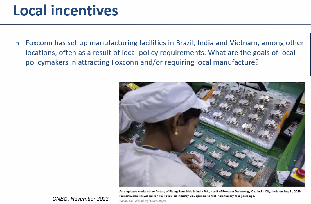 - Foxconn has set up manufacturing facilities in Brazil, India and Vietnam, among other locations, often as a result of local policy requirements.