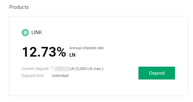 링크 코인을 Deposit 만 하면 이자 받기 위한 상품 가입은 끝이다.