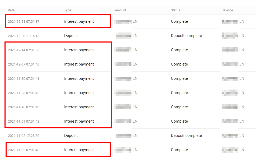 앞서 말했다시피 워낙 가격 변동성이 커서 이자로 인해 이득을 보고 있는지는 가늠하기 어려우나, 장기적인 관점에서 코인이 우상향 한다는 전제하에 아래 상품가입으로 하방 리스크를 헷징하는 것도 하나의 방법이니 참고하면 좋을듯 하다.