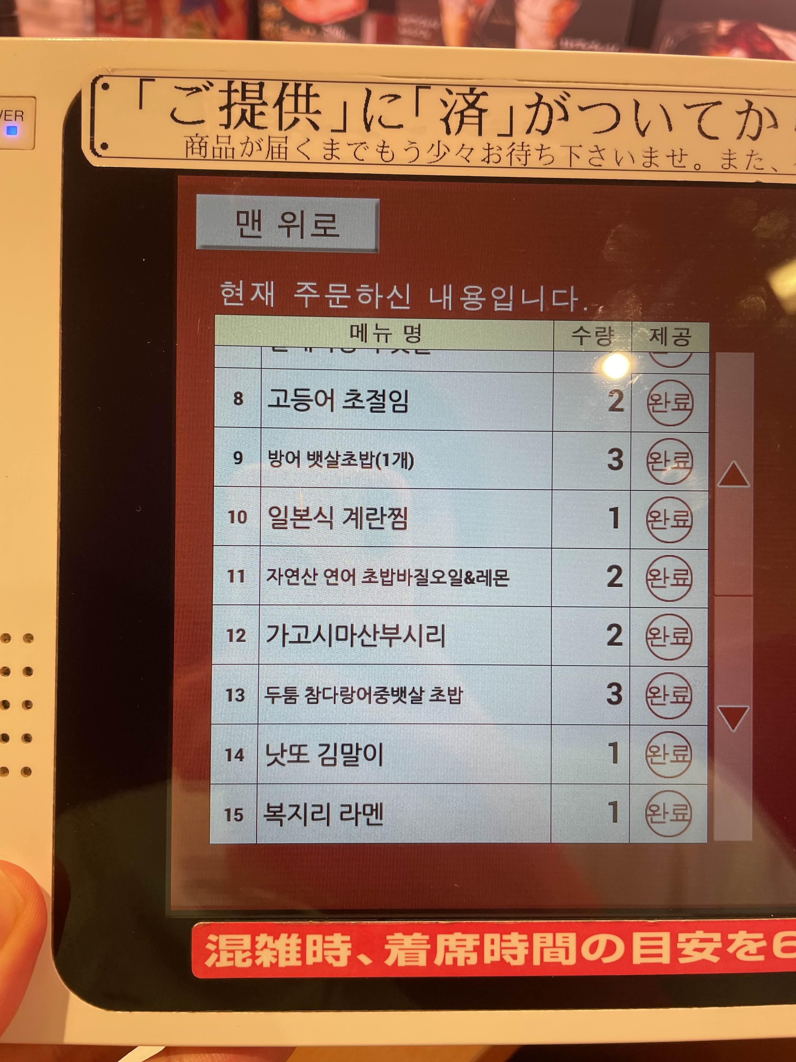 회전을 하지는 않고 주문한 음식이 내 자리로 배송되는 시스템이다.