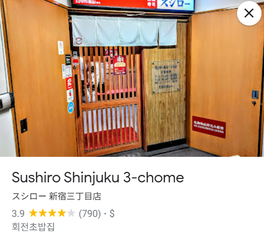 Sushiro Shinjuku 3-chome · 일본 〒160-0022 Tokyo, Shinjuku City, Shinjuku, 3 Chome−13−3, Shinjuku Bunka Bldg, B1F