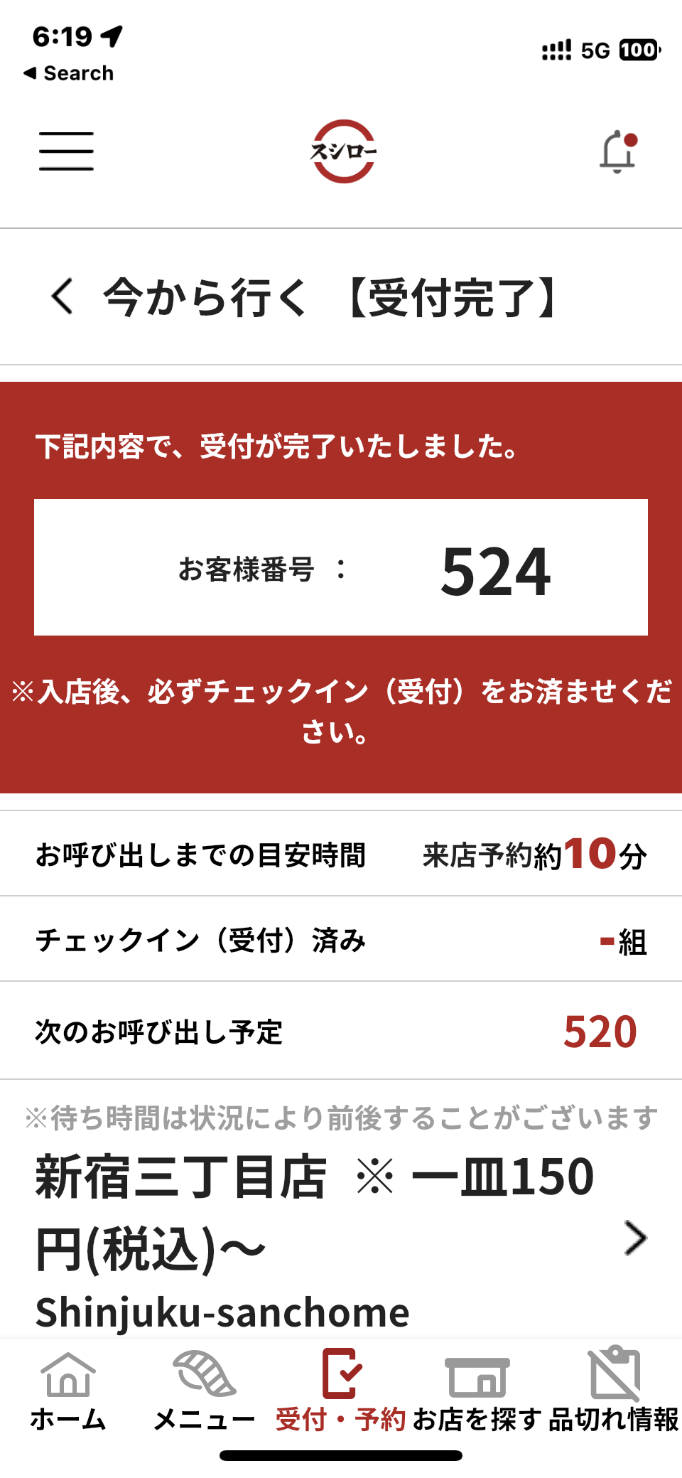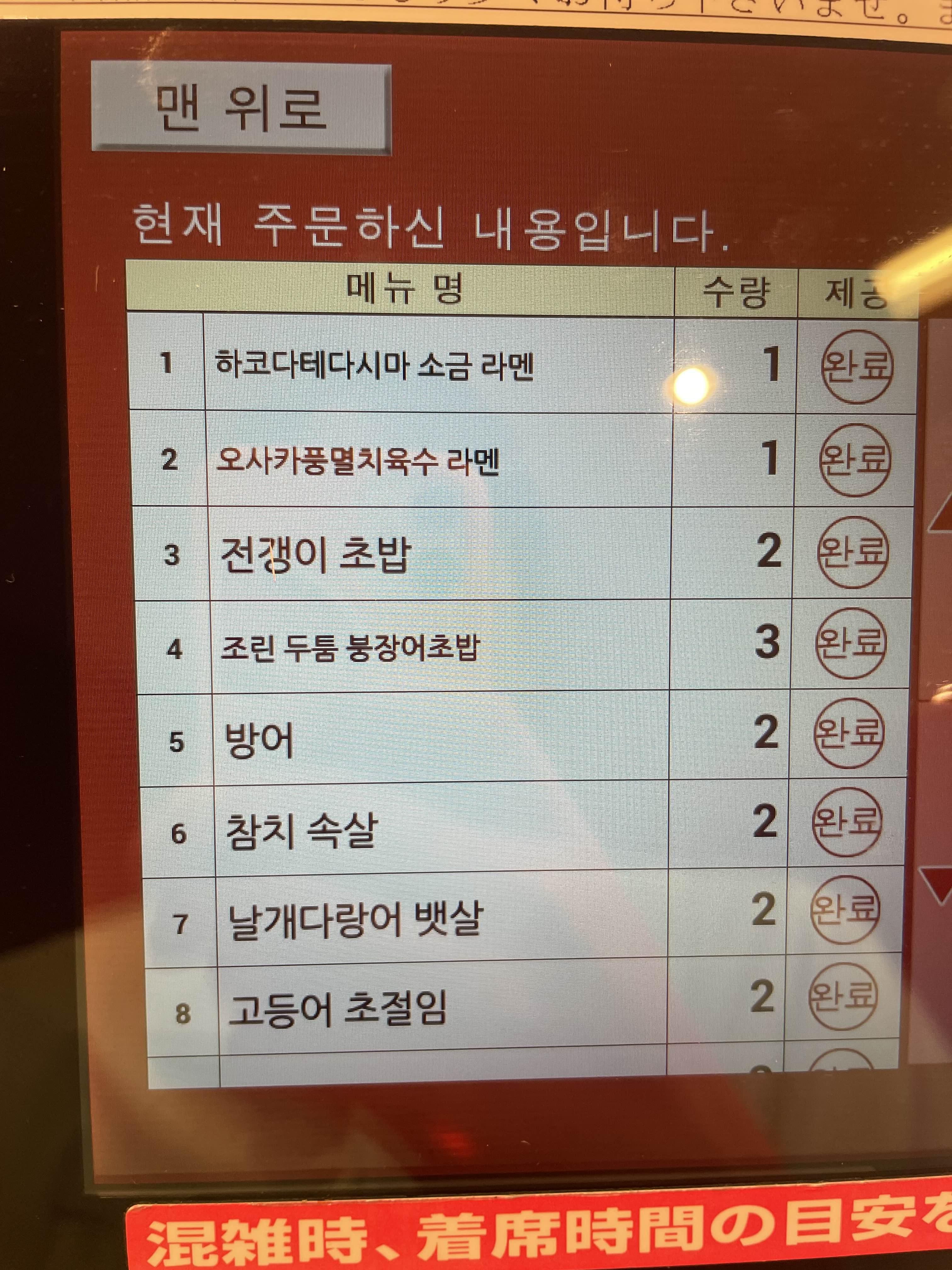 지난 번 우에노점 때 너무 큰 코를 다쳐서 앞으로는 방문 때마다 미리 웨이팅을 앱으로 걸어두고 있다