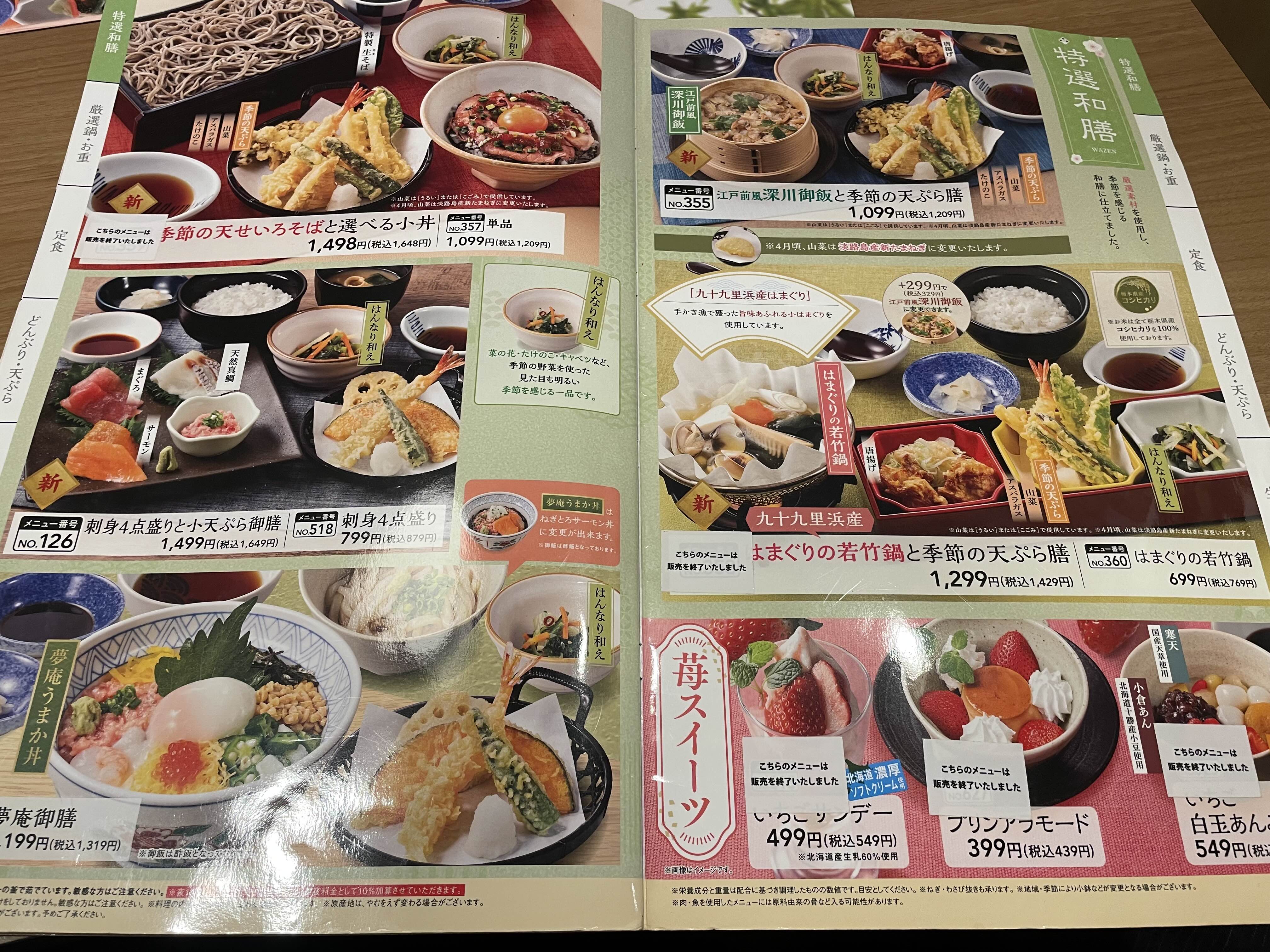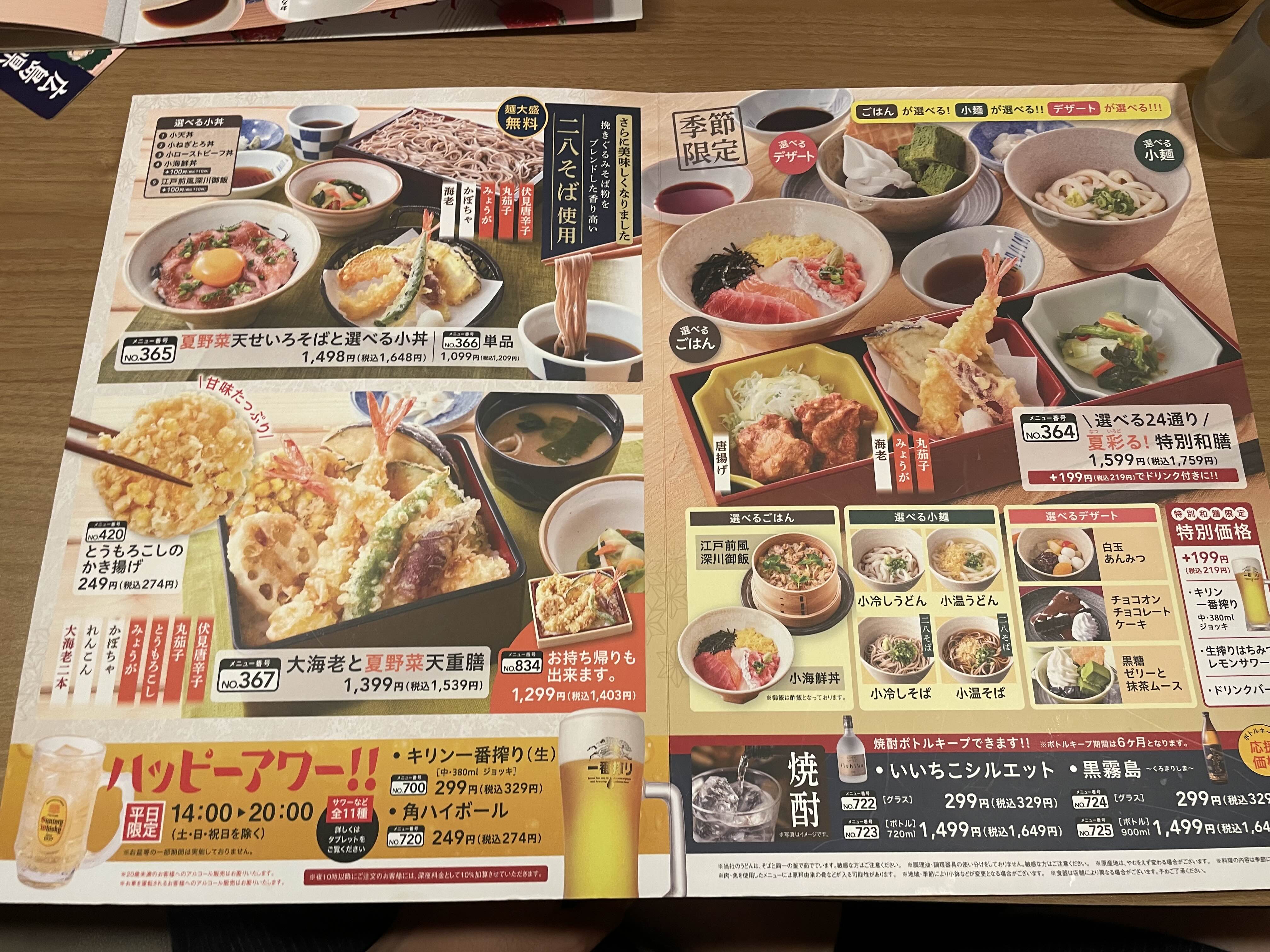 우동도 나오고 소바도 나오고 튀김도 나오고 돈부리도 나오고