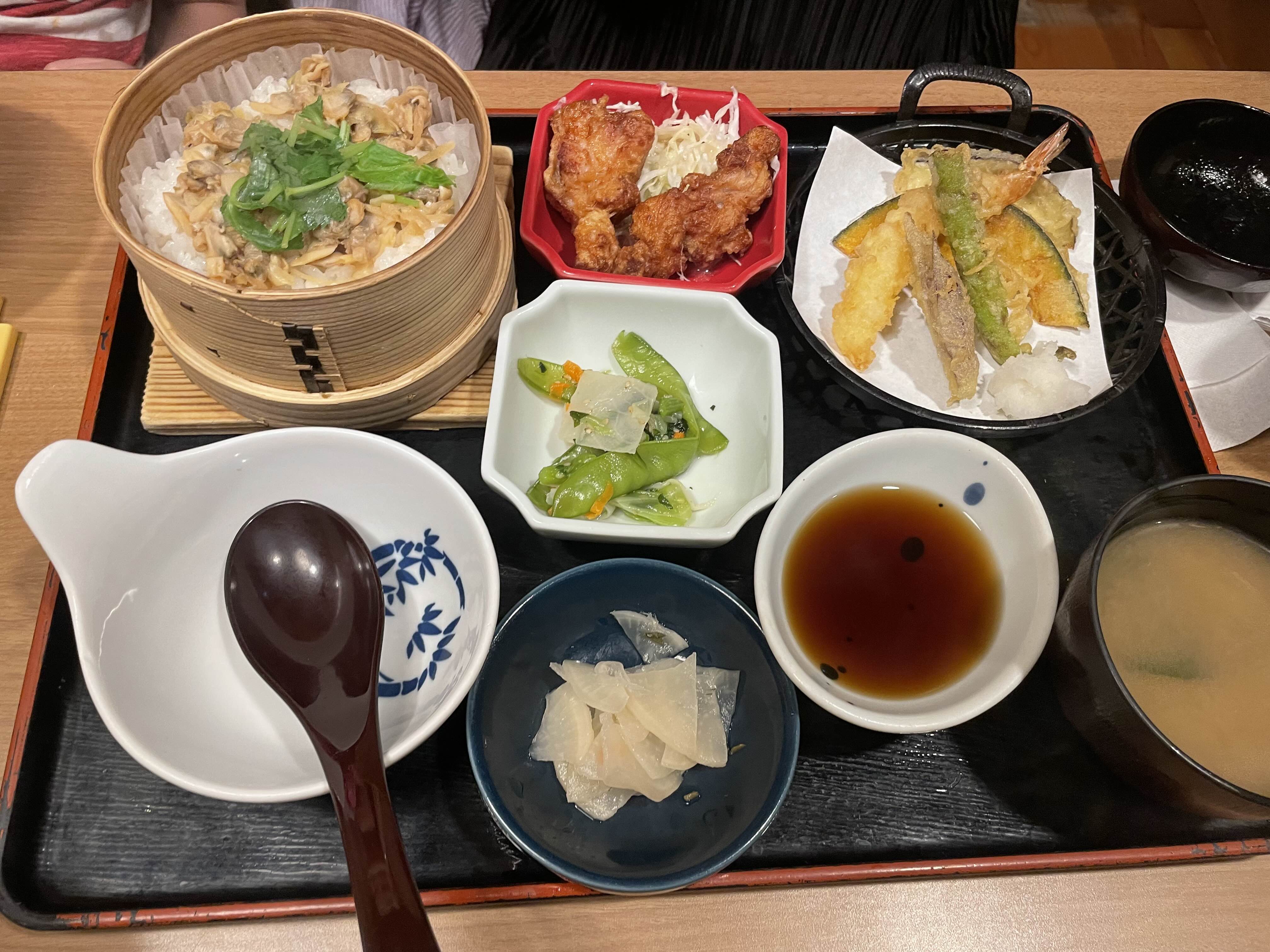 그리고 내가 주문한 덴푸라 모리 세이로 돈부리 세트 1,703엔