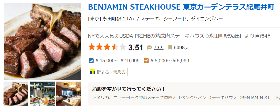★★★☆☆3.51 ■NYで大人気のUSDA PRIMEの熟成肉ステーキハウス◇永田町駅9a出口より直結4F ■予算(夜):¥15,000~¥19,999
