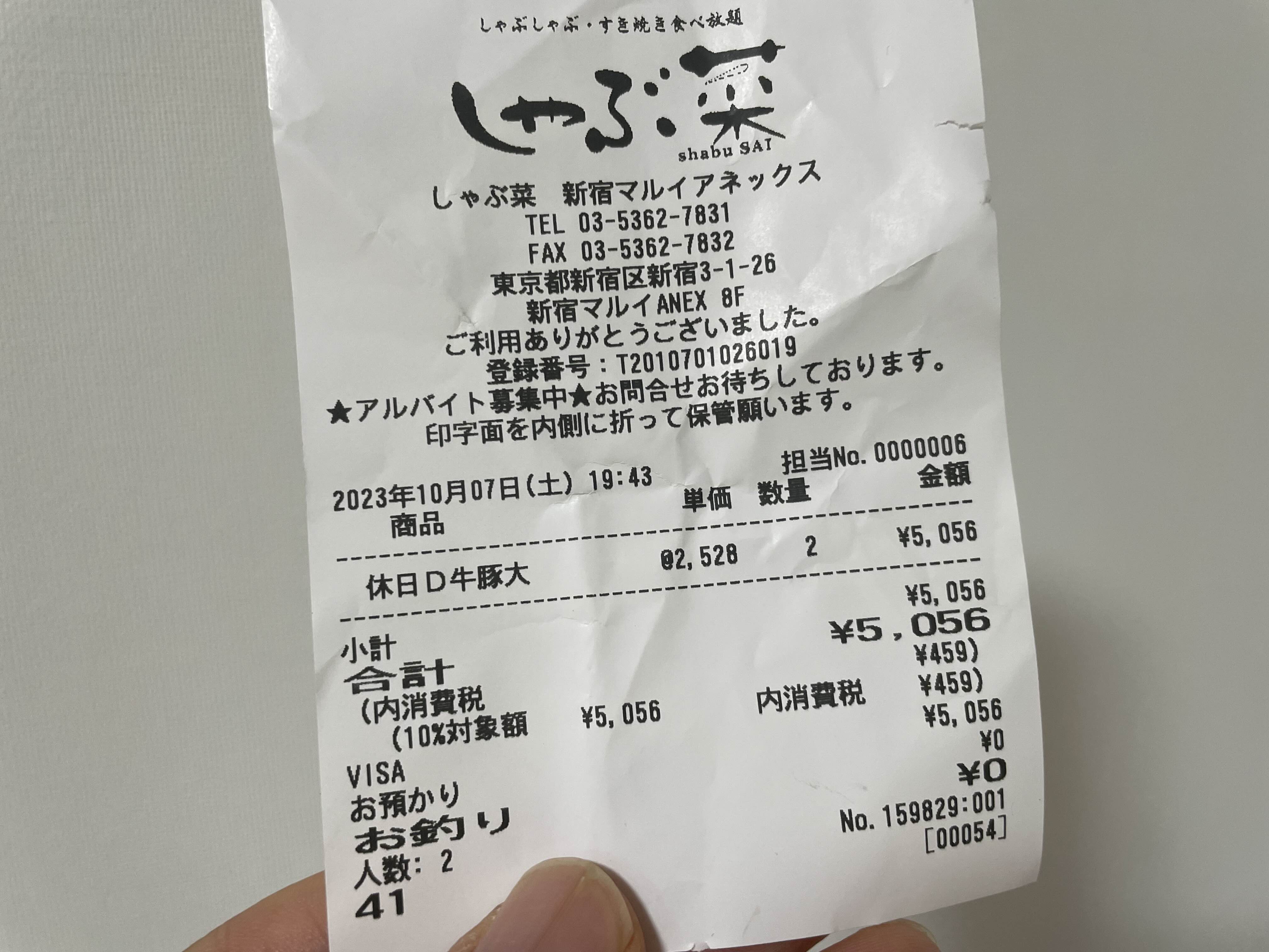 이렇게 먹고 2명이서 2,500엔 따리여서 5,056엔이 나왔다