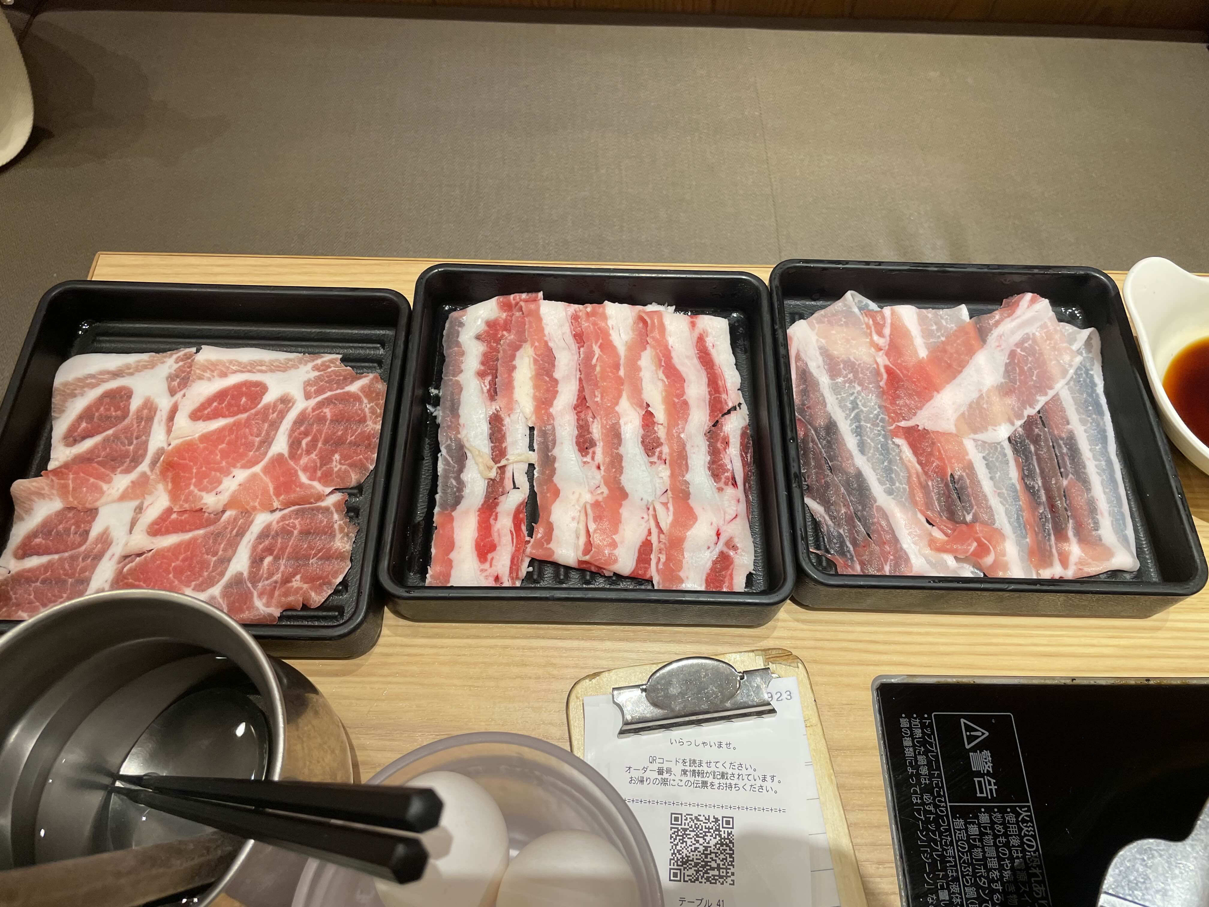 다시를 2개 고르는걸로 되어있는데 우리는 그냥 다시마 육수와 스키야키를 주문했다