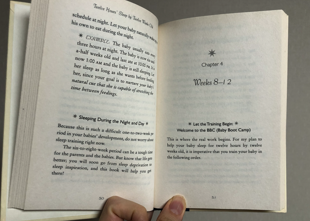 Step 2: Feeding During the Night: Gradually eliminate all night feedings for twelve hours - Step 3: 밤잠: 12시간 동안 아기 침대에서 자거나 조용히 쉬게 하기