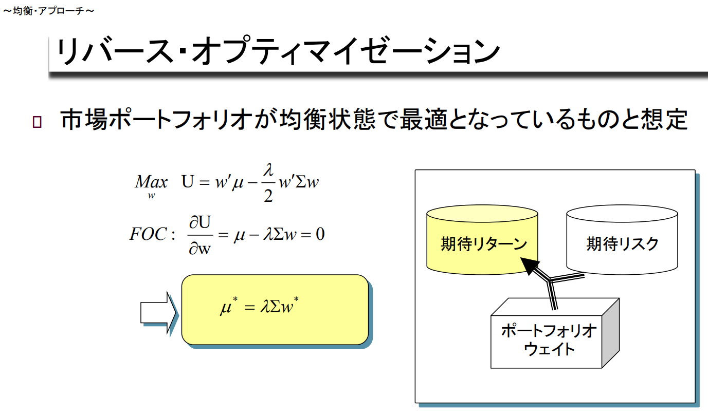균형 Approach (자산 위험과 시장 포트폴리오 가중치에서 역산)