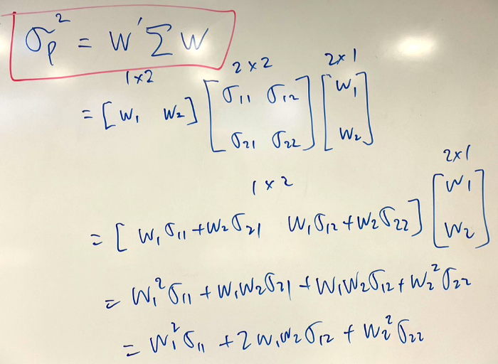 = [ w1 w2 ] [ σ11 σ12 / σ21 σ22 ] [ w1 / w2 ]
