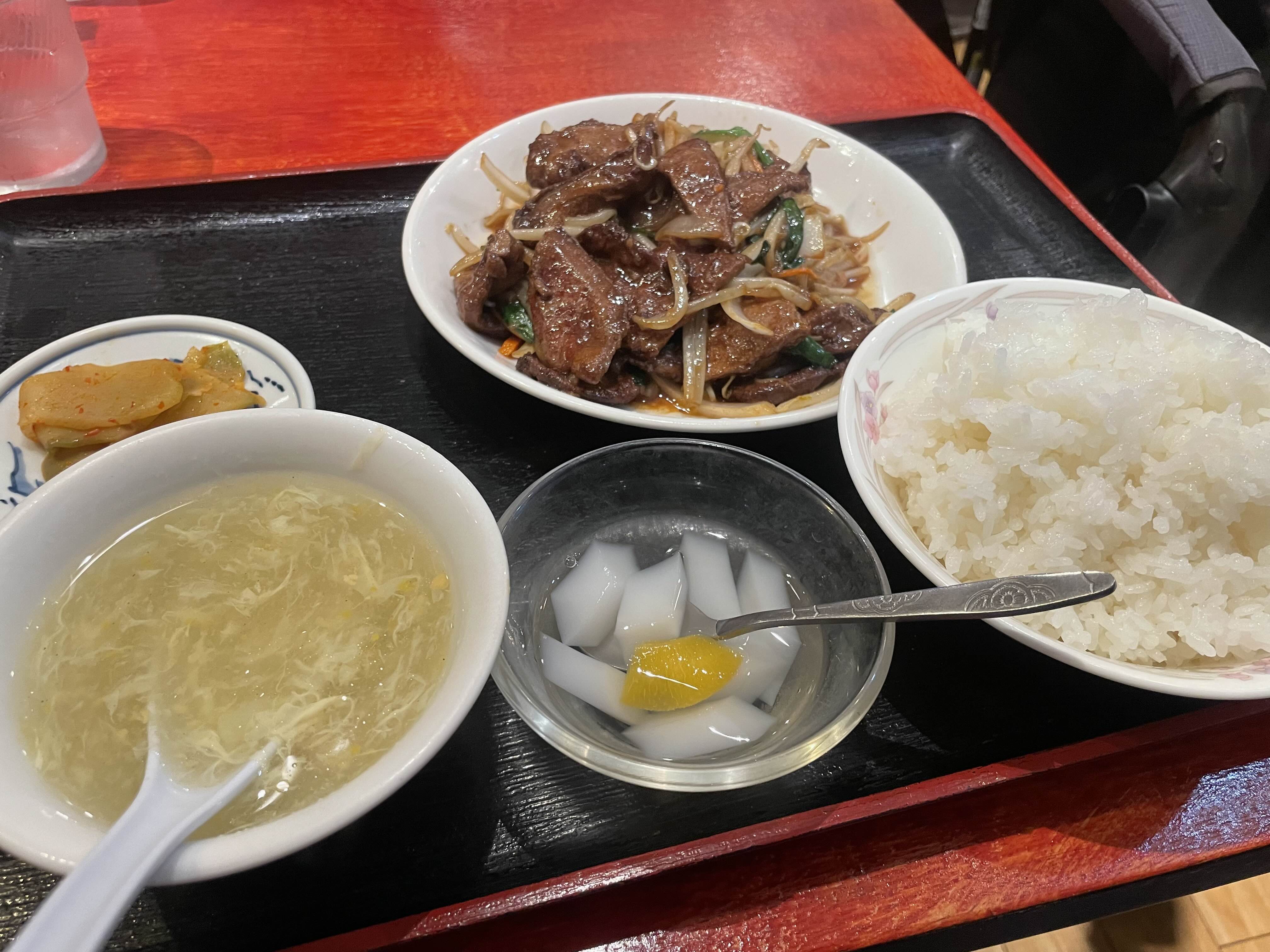 내가 주문한건 정식 2번 부추 간 볶음 900엔
