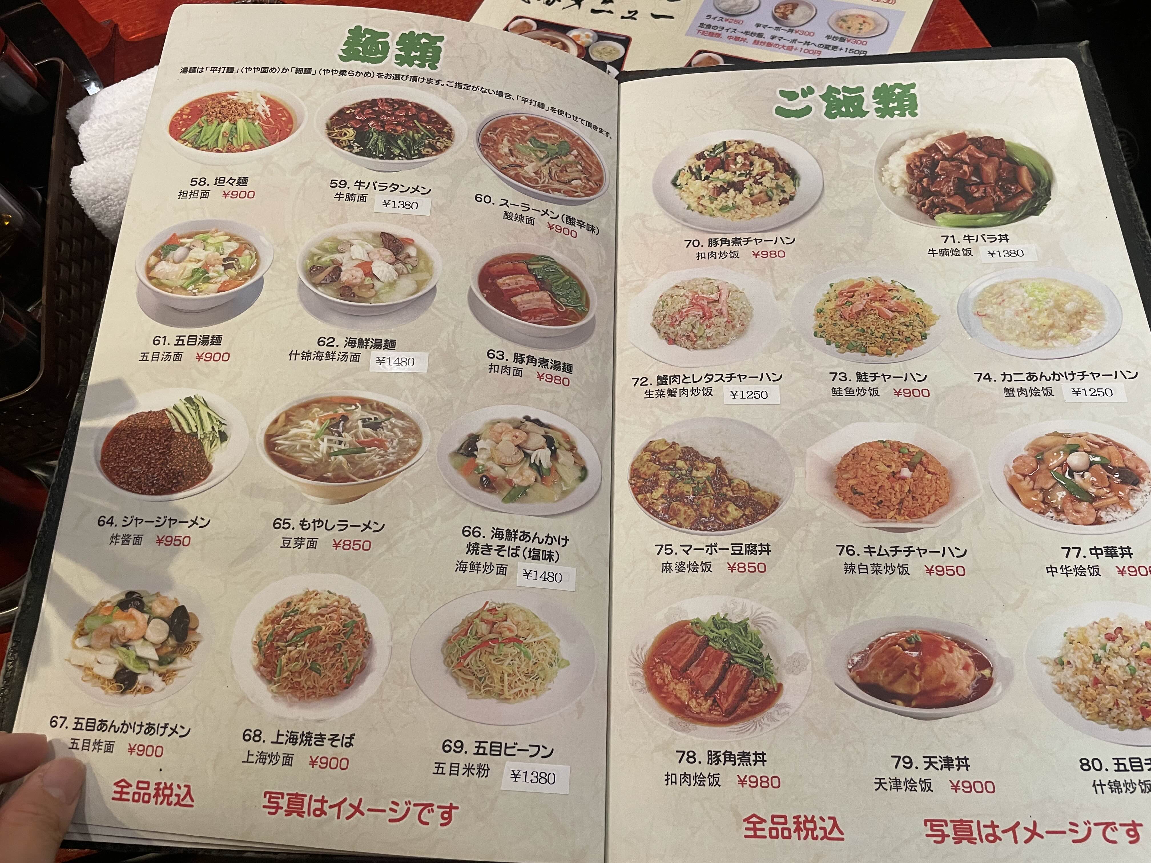 뒤에는 면류와 볶음밥류가 있다